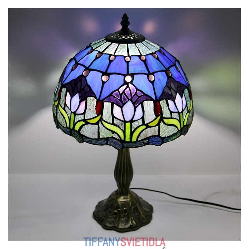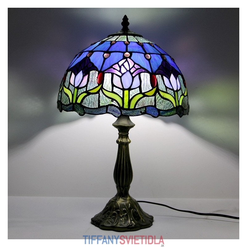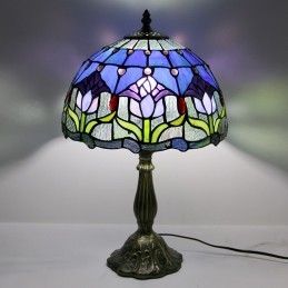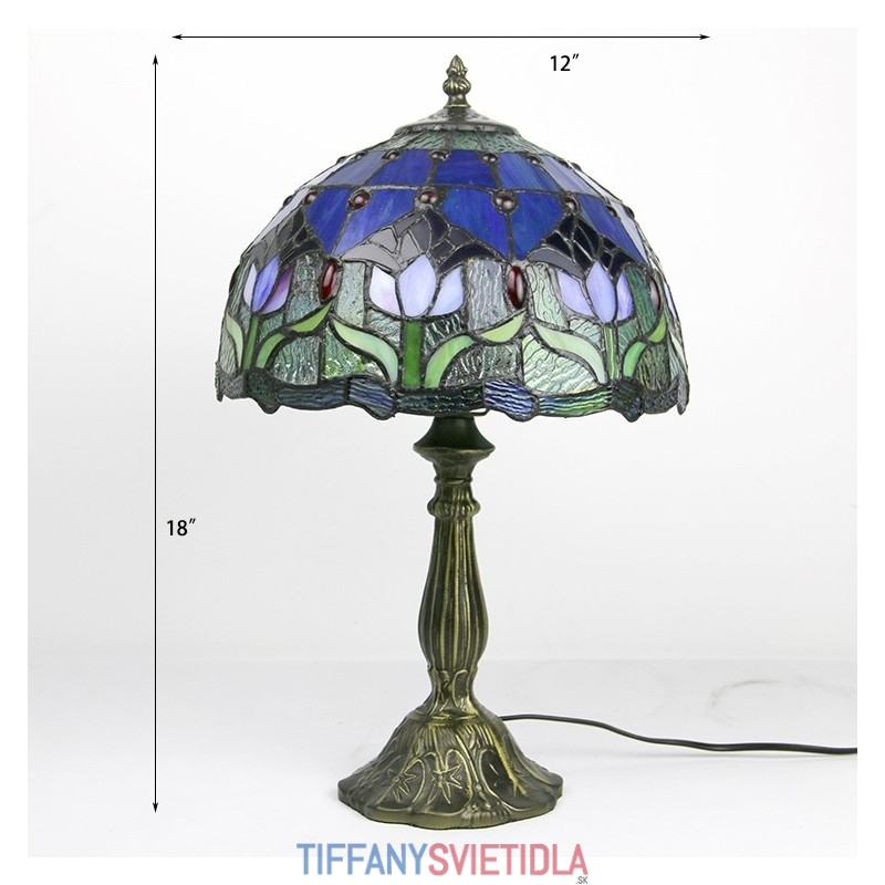 12-palcová lampa Tiffany z farebného skla nočný stolík lampa na čítanie v starožitnom tulipánovom štýle svetlá 18" vysoká