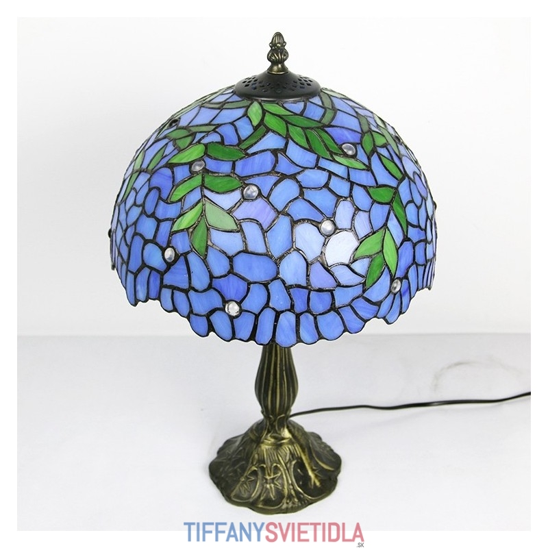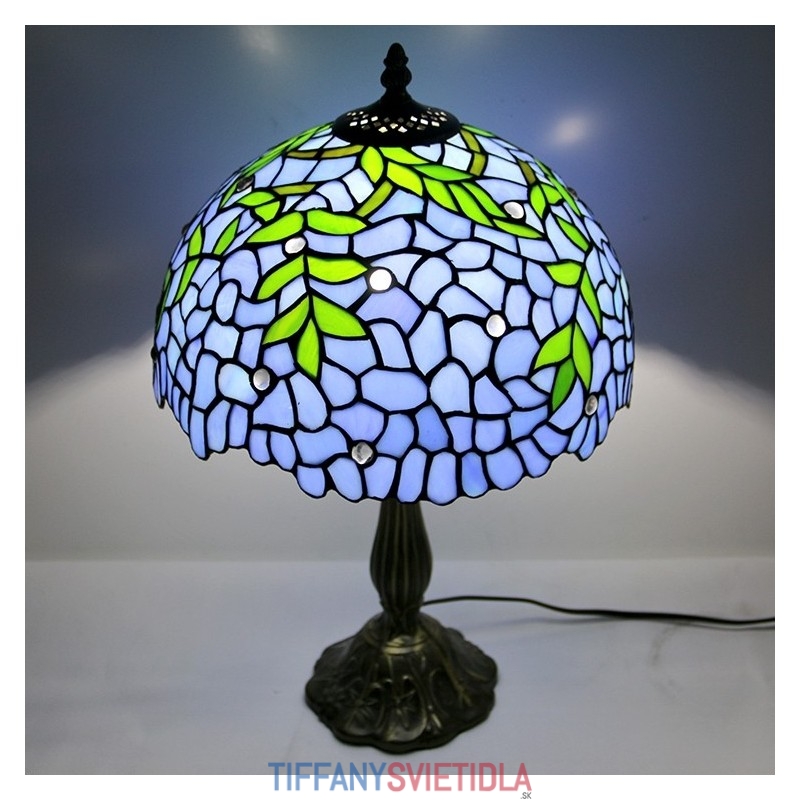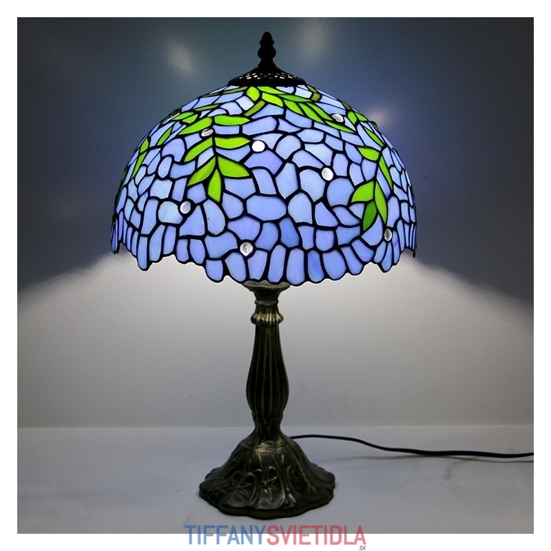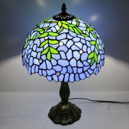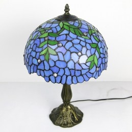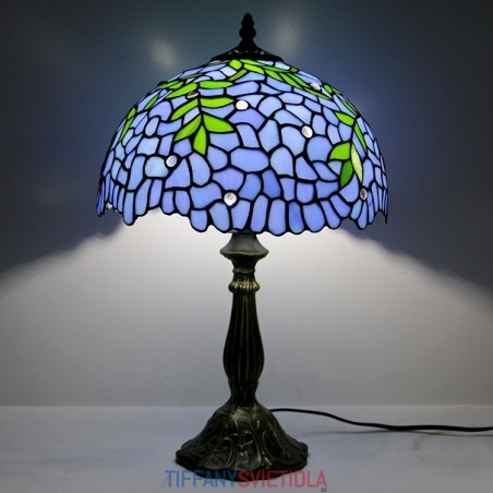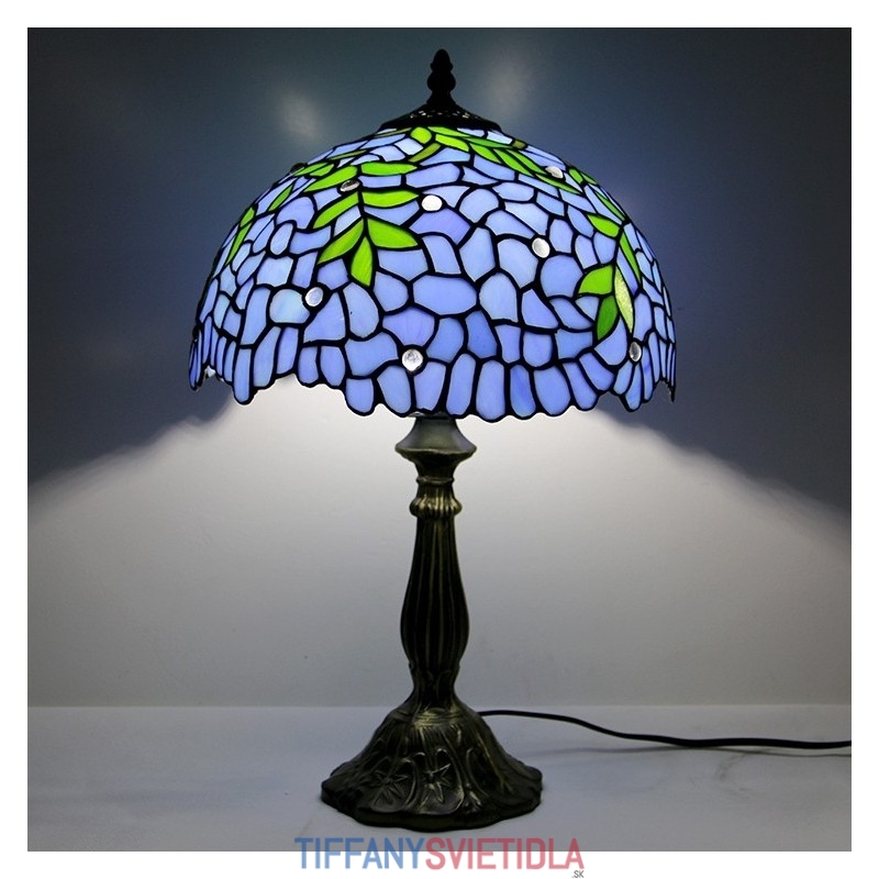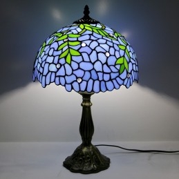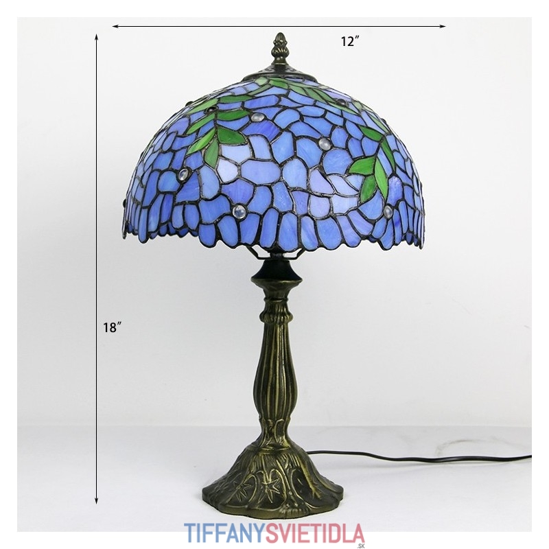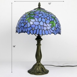 12-palcová Tiffany lampa Nočný stolík z farebného skla Lampa na čítanie Wisteria Blue Svetlý 18" vysoký
