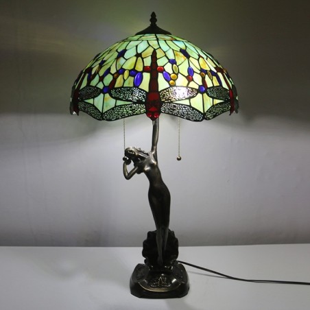 16-palcová stolová lampa Tiffany lampa Starožitná zelená vitráž Luxusná banková lampa s pamäťou Jedinečná medená základňa