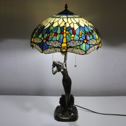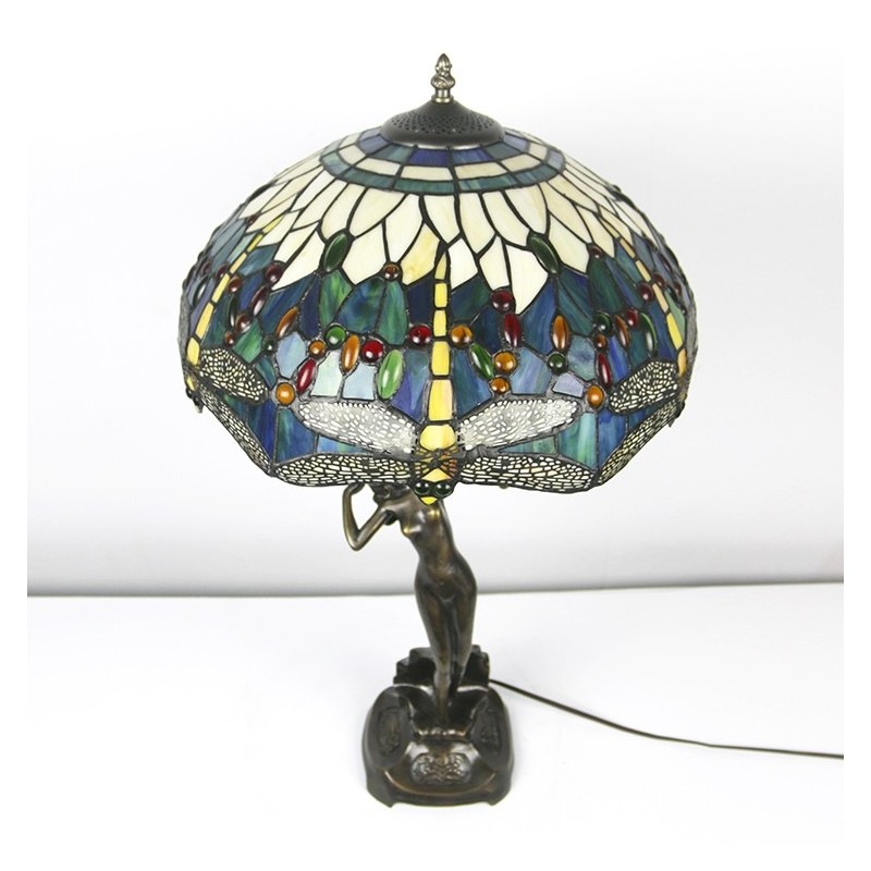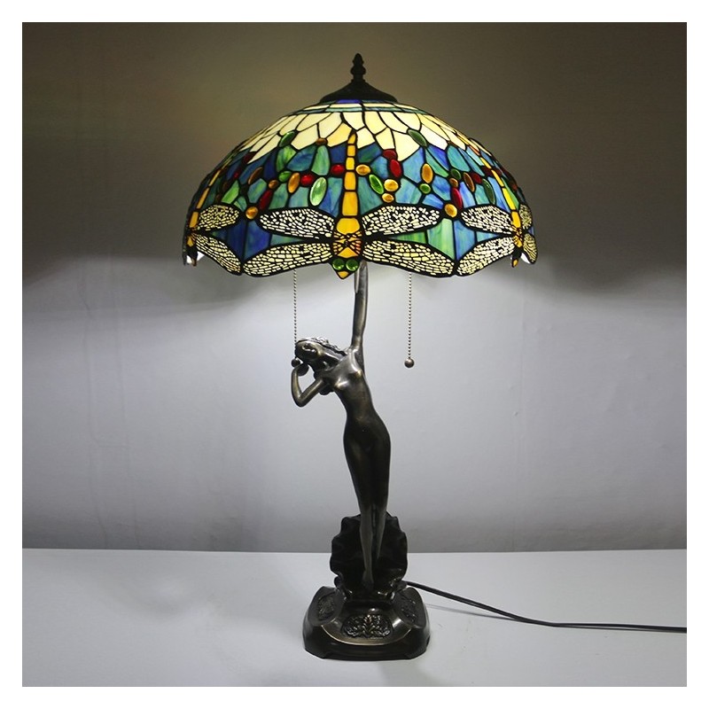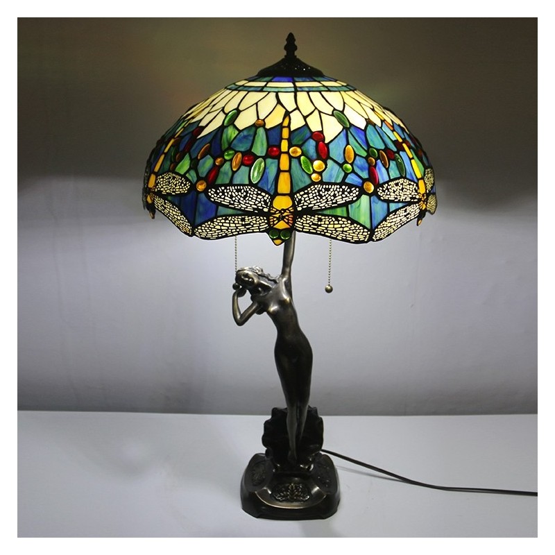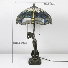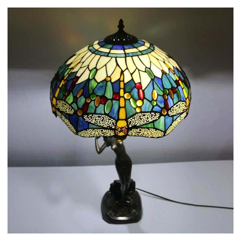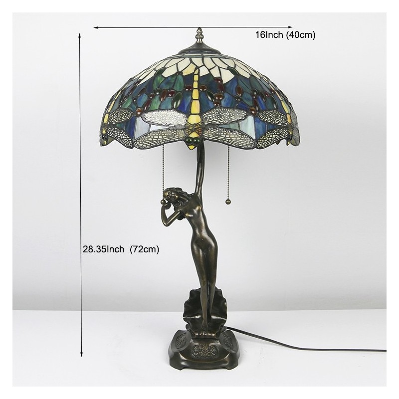 16-palcová lampa Dragonfly Tiffany Stolová lampa z farebného skla Luxusná banková pamäťová lampa Starožitná medená základňa
