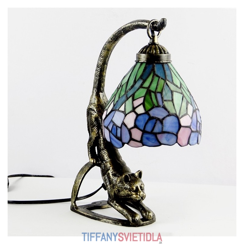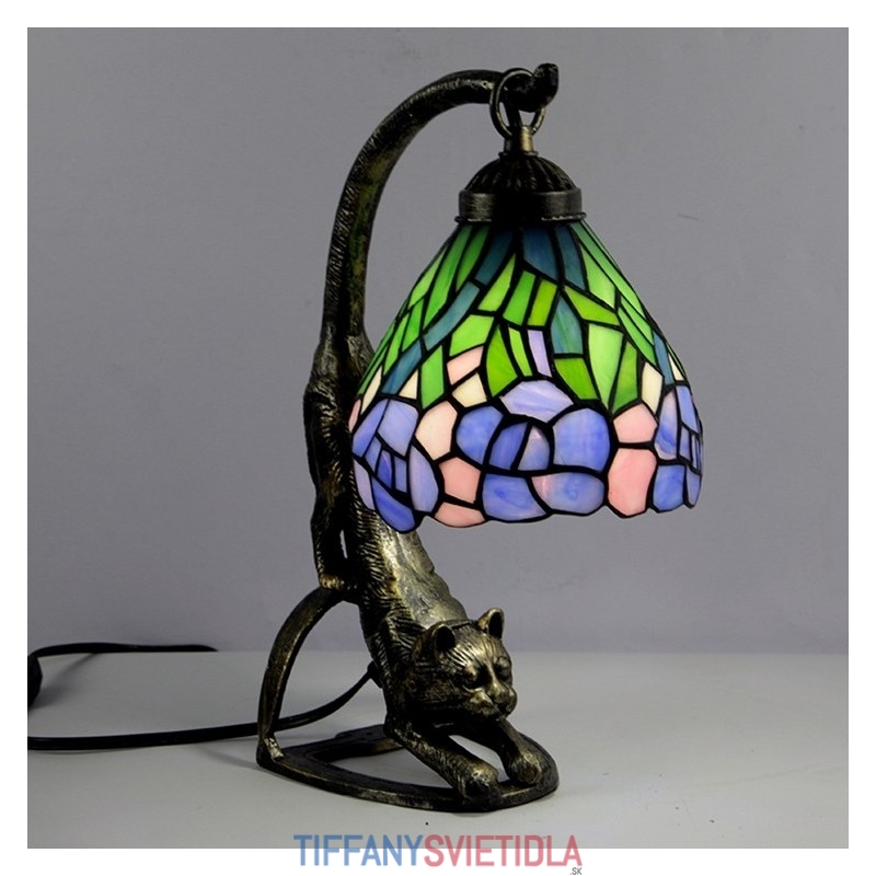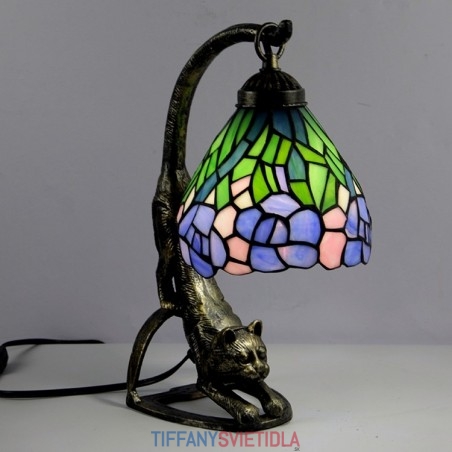 Stolová lampa v štýle Tiffany Starožitná nočná lampa z farebného skla Wisteria so základňou pre mačky 15 palcov vysoká