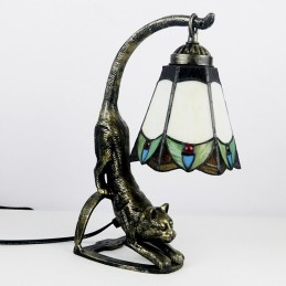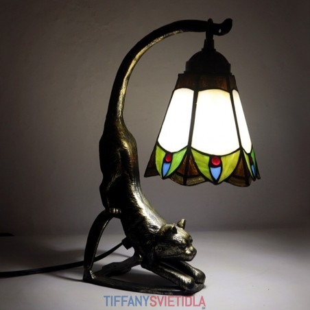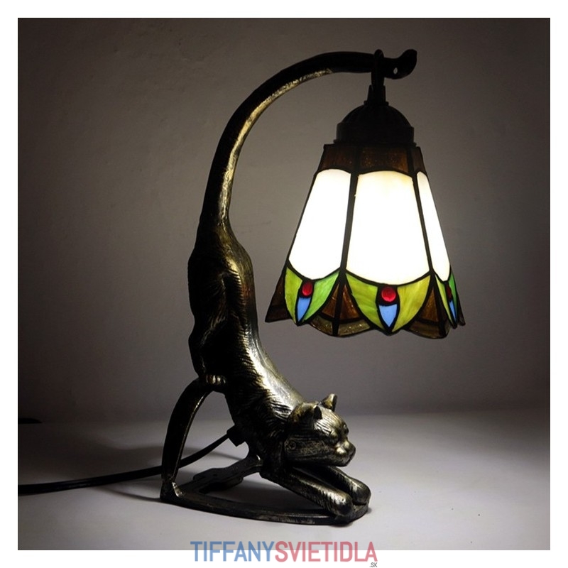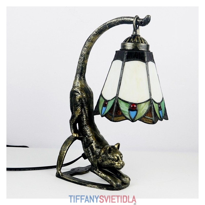Stolová lampa v štýle Tiffany Nočný stolík z farebného skla Nočná lampa s podstavcom pre mačky 15 palcov vysoká