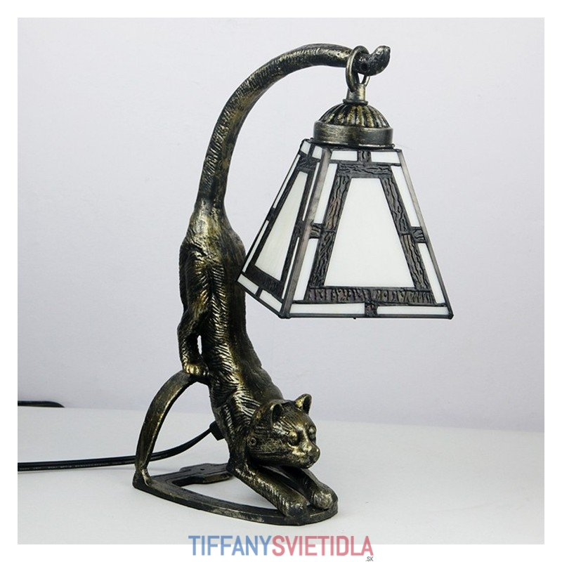Stolová lampa v štýle Tiffany Starožitná nočná lampa z farebného skla s mačacou základňou 15 palcov vysoká vintage