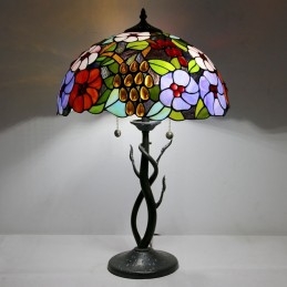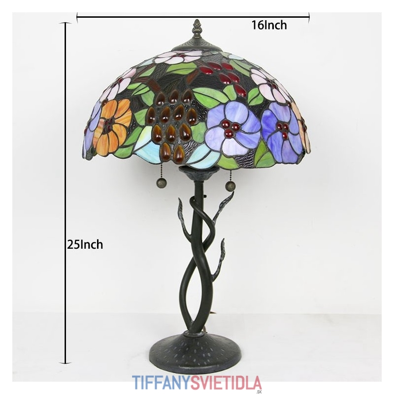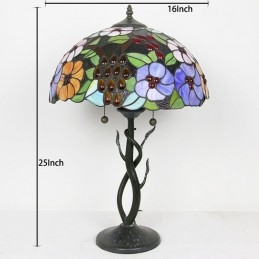 Stolná lampa v štýle Tiffany Farebné sklo Lampfade Kvetinová nočná lampa Ružová dekorovaná lampa 16 palcov