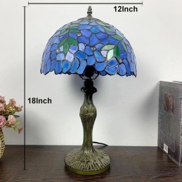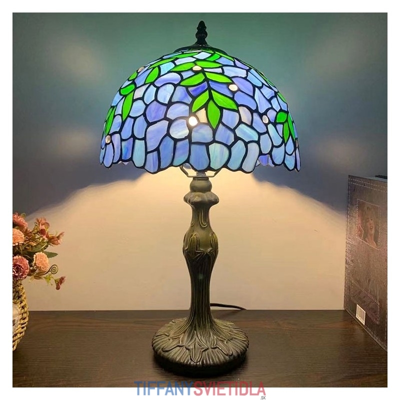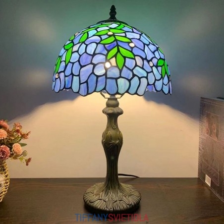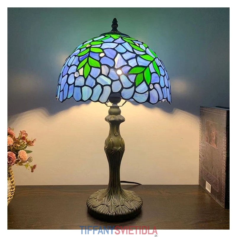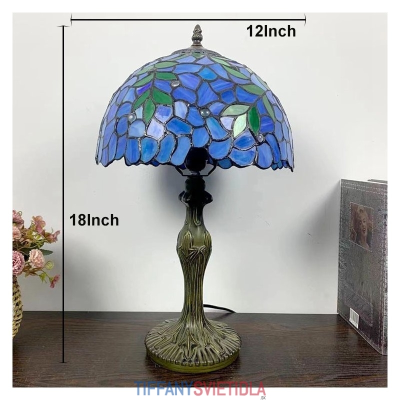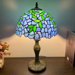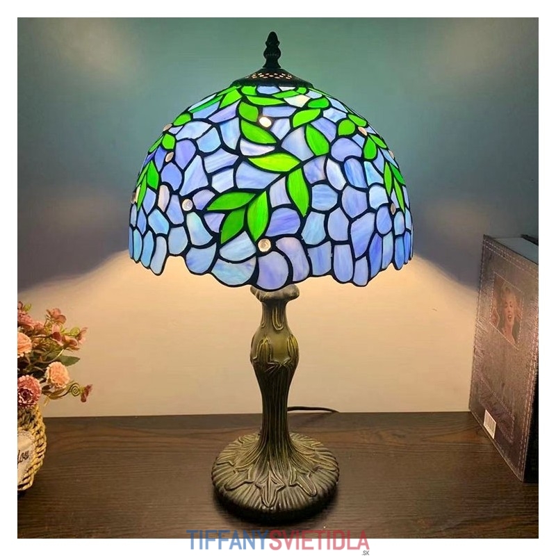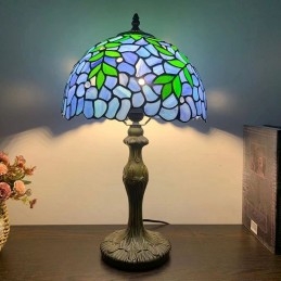 Stolová lampa v štýle Tiffany Zelené listy Modré vitráže Lamphade Stolové osvetlenie 12W18H