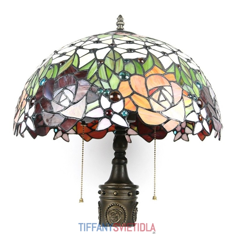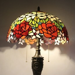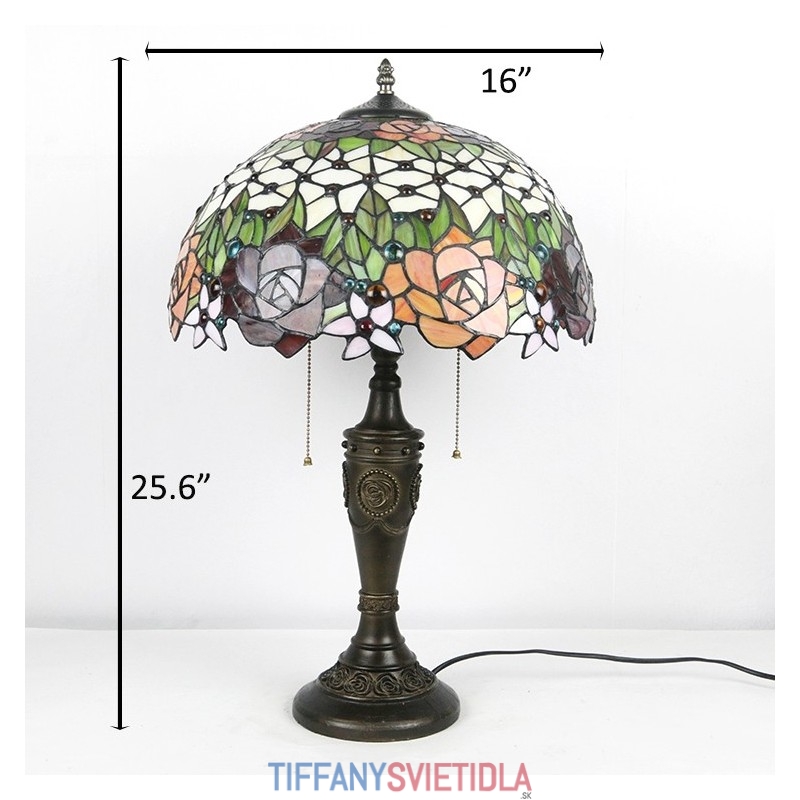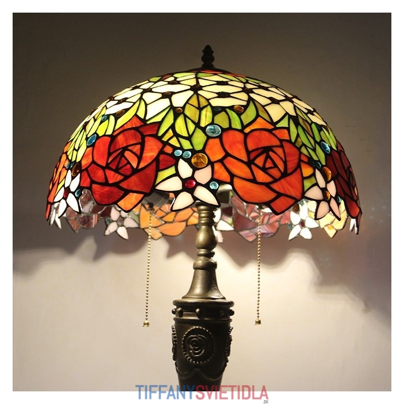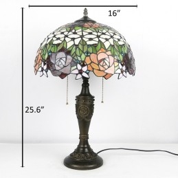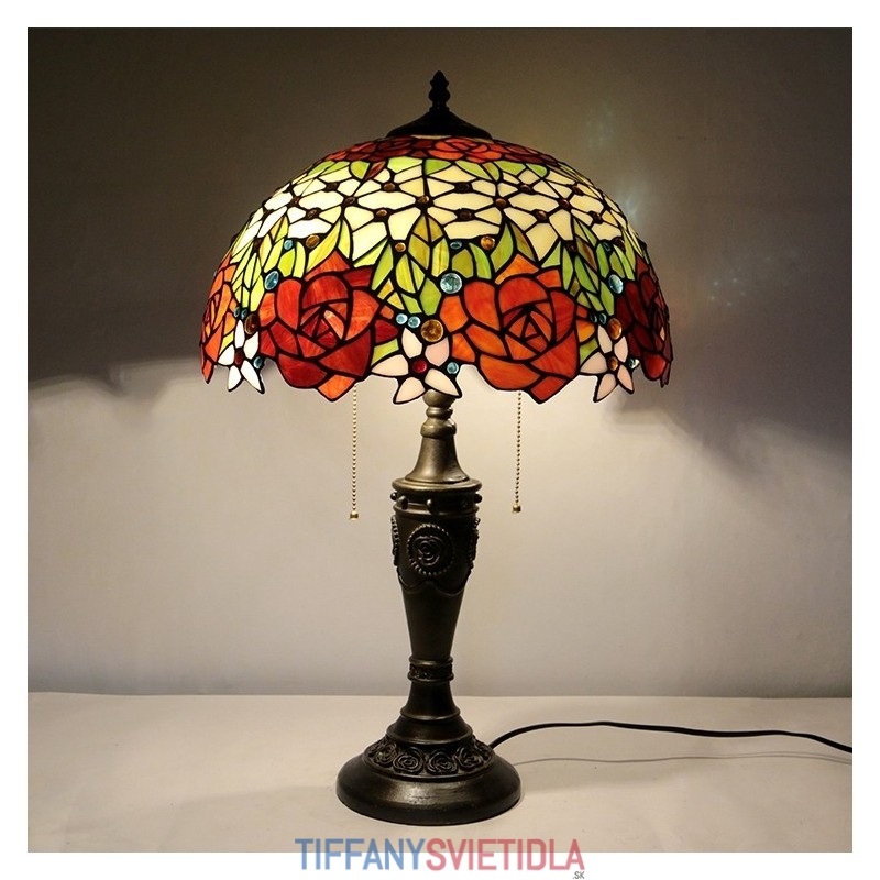 16-palcová retro stolná lampa Tiffany vitráže Love Roses Lampphade Lights Ručne vyrábaná sklenená stolná lampa