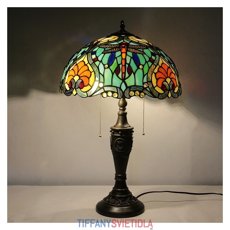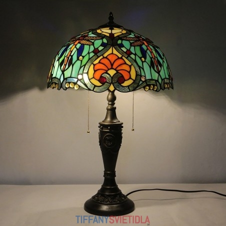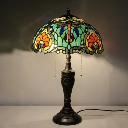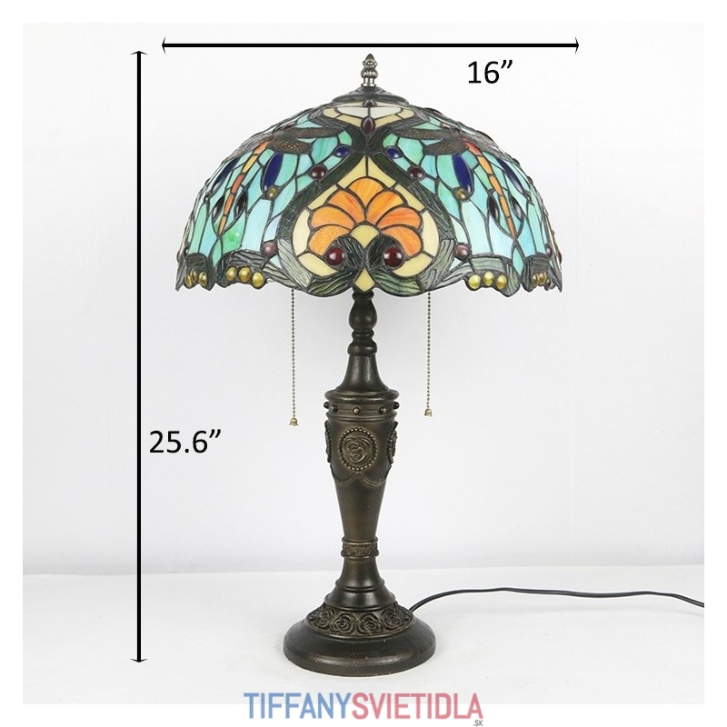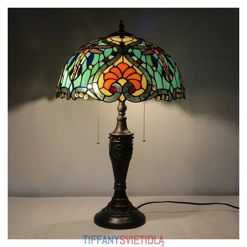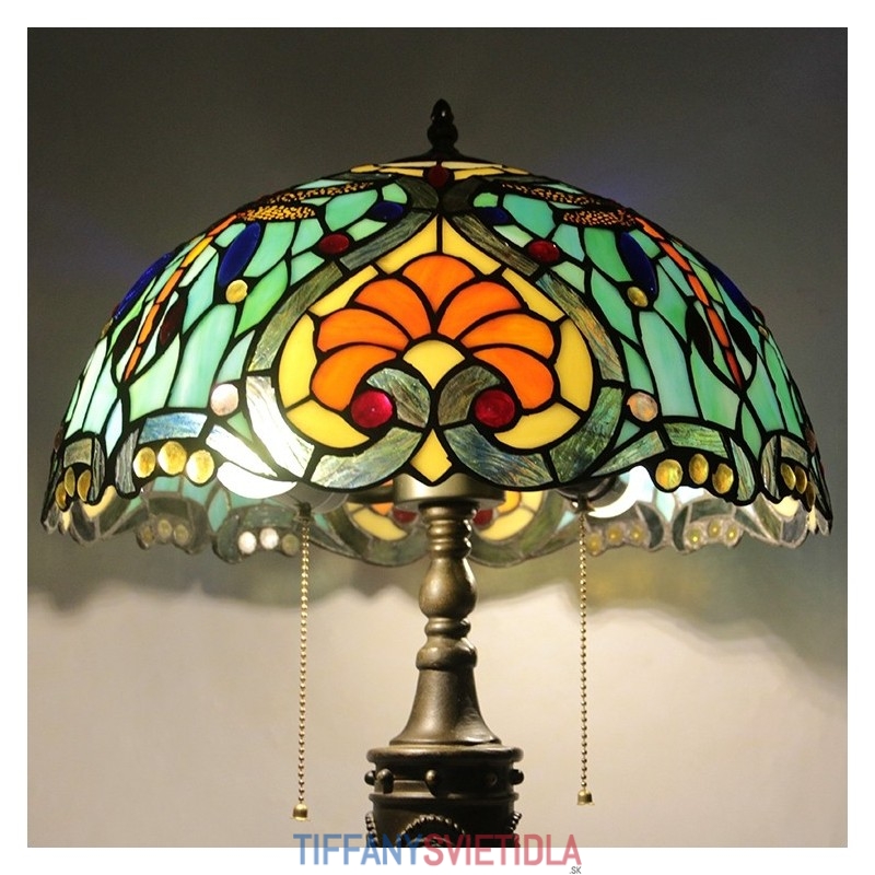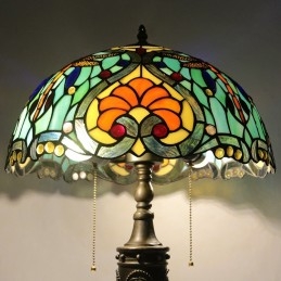 16-palcová retro stolná lampa Tiffany vitráže Love Green Lamphade Lights Ručne vyrobená sklenená stolná lampa