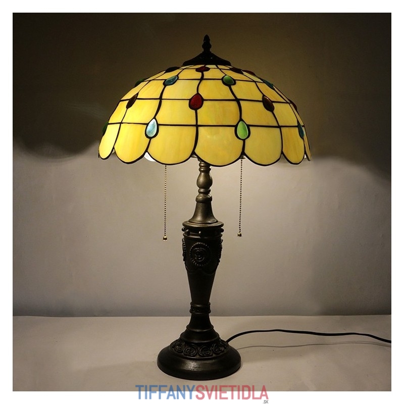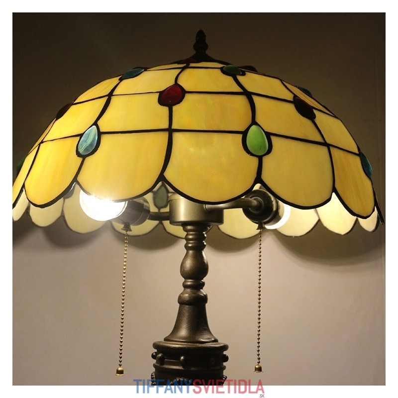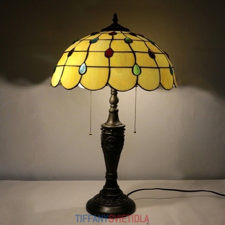 16-palcová retro stolná lampa Tiffany vitráže Žlté lampové svetlá Ručne vyrábané sklenené stolové lampy