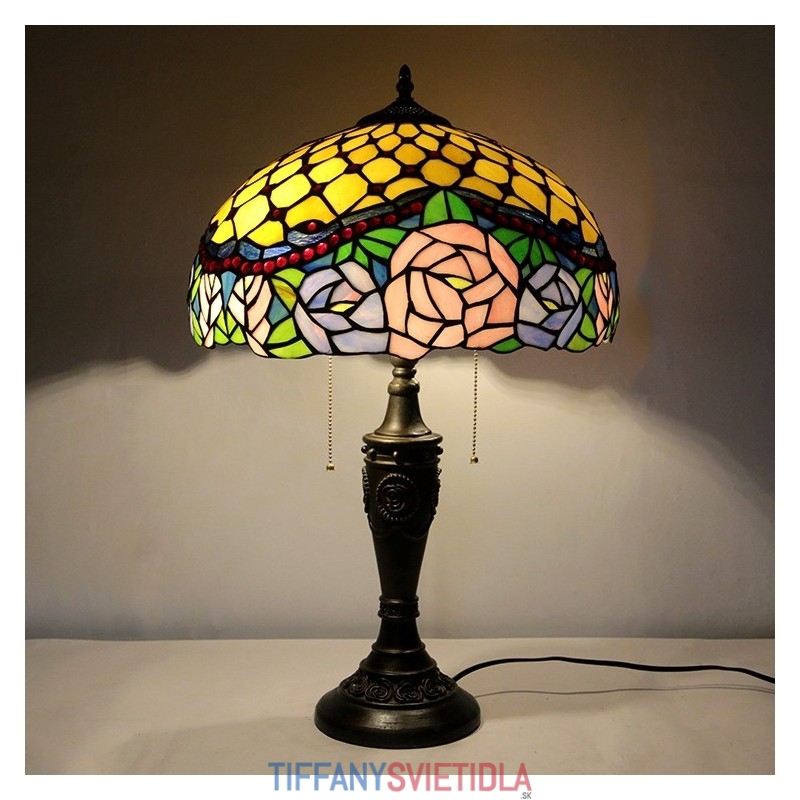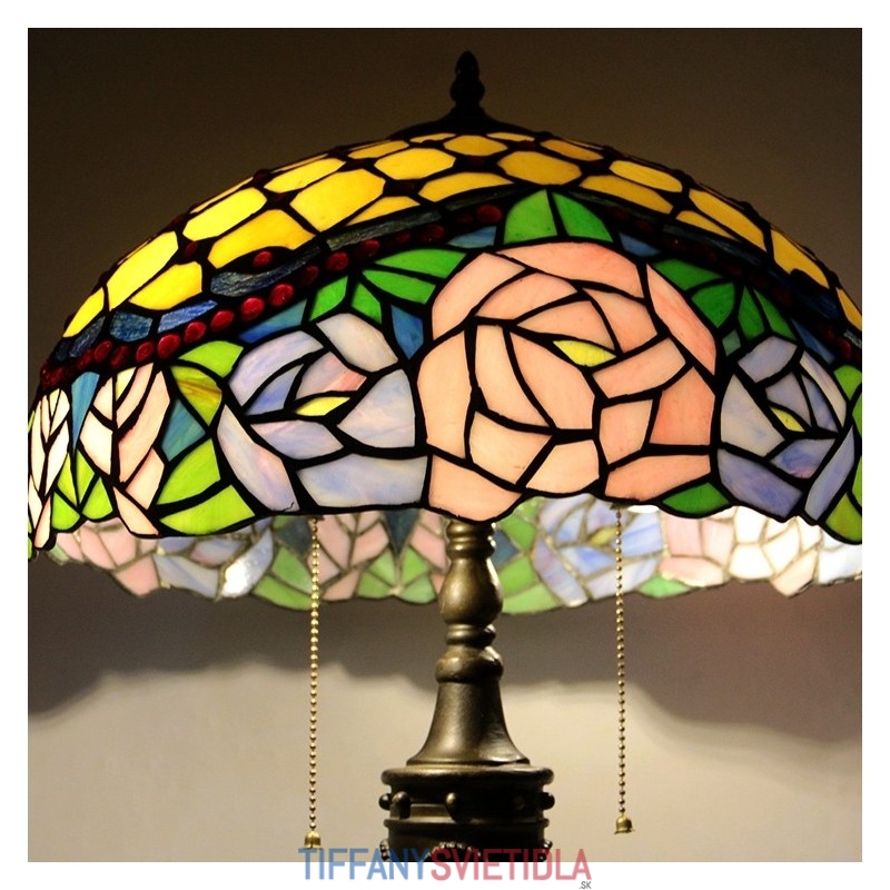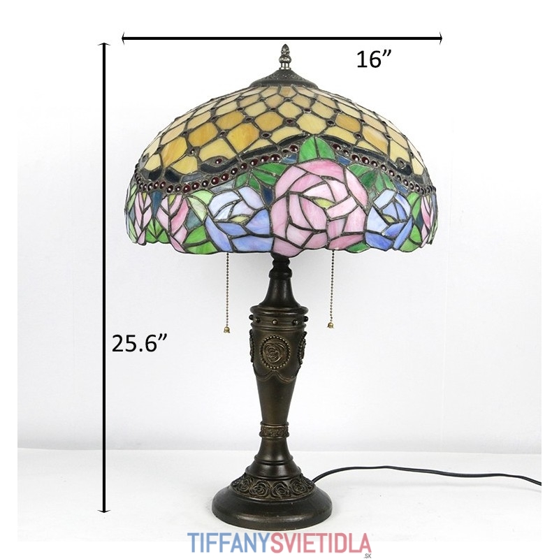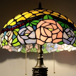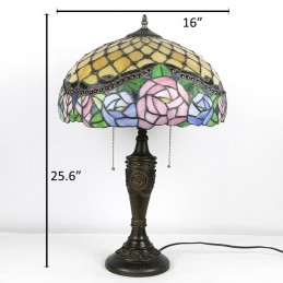 16-palcová retro stolná lampa Tiffany vitráže Ružová ruža lampa lampy Ručne vyrobená sklenená stolná lampa