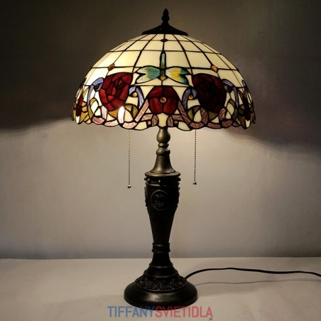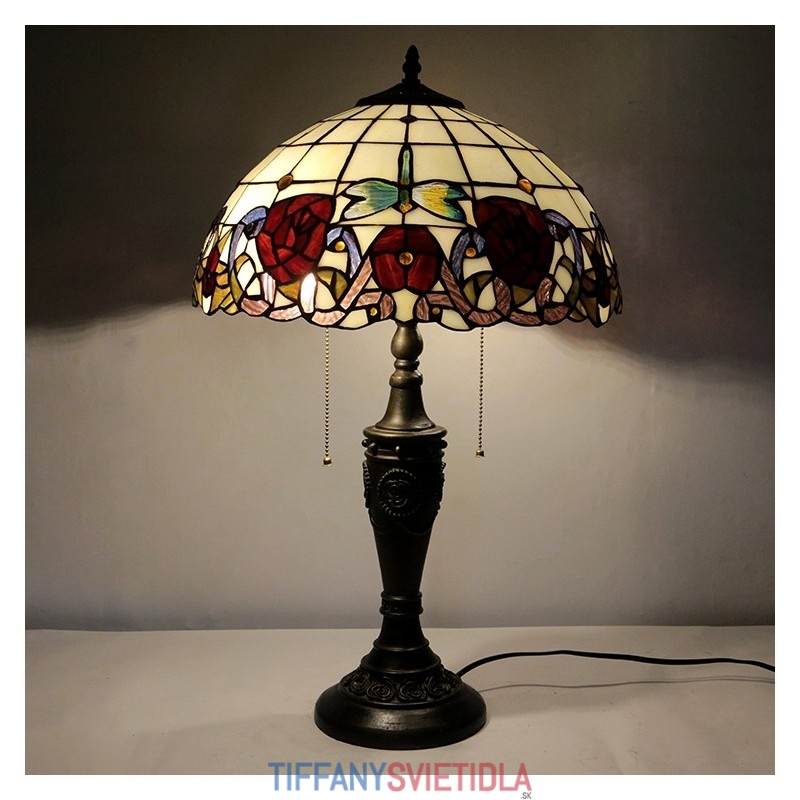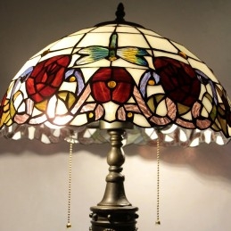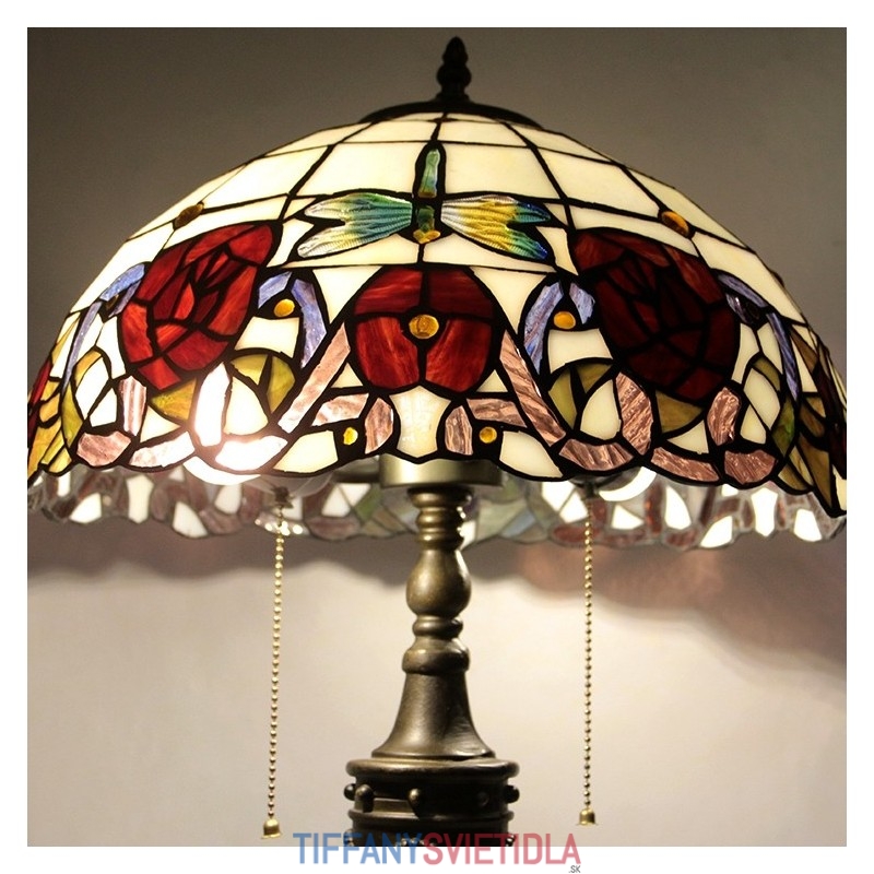 16-palcová retro stolová lampa Tiffany červená vitráž Červená ruža lampa svetla Ručne vyrobená sklenená stolná lampa