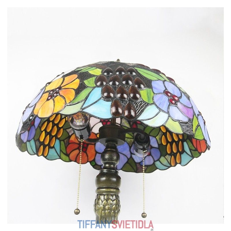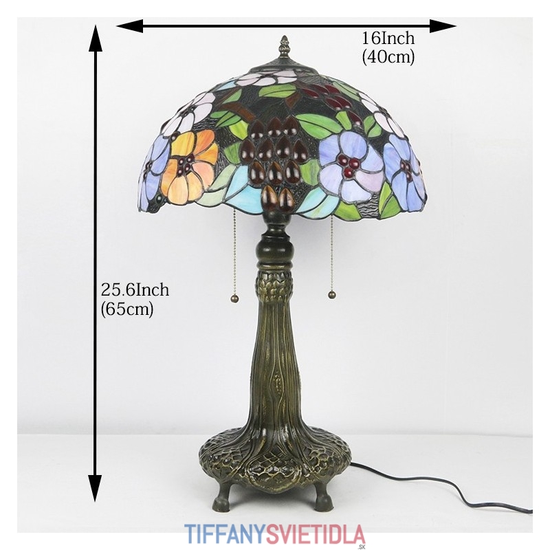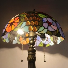 16-palcová Tiffany lampa Stolová lampa z farebného skla Grape and Flower Style Stôl Svetlo na čítanie Dekor Osvetlenie