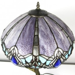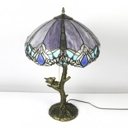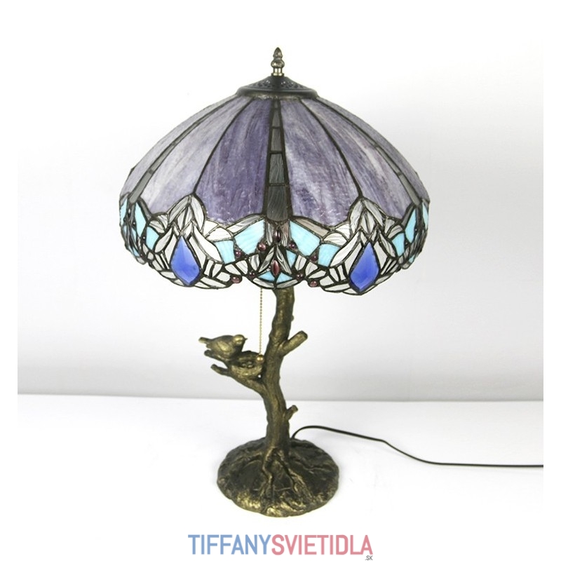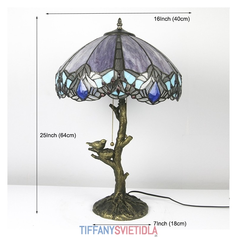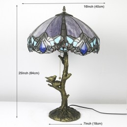Fialová stolová lampa z farebného skla Tiffany v štýle vážka so 16 palcovou širokou lampou a kmeňom stromu vtáčie hniezdo