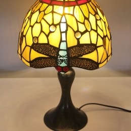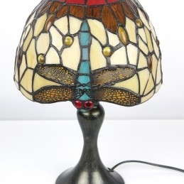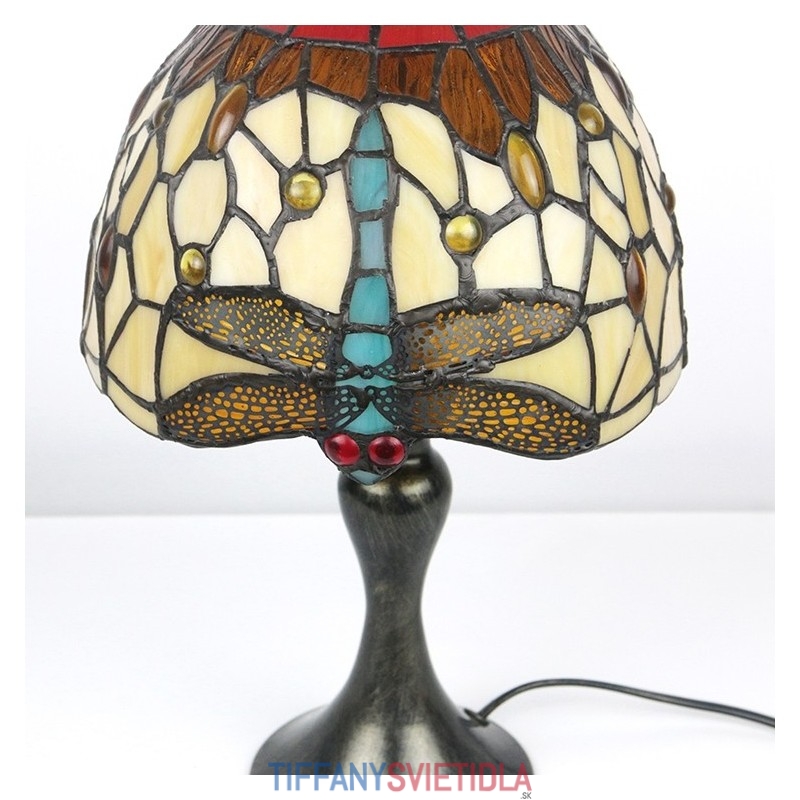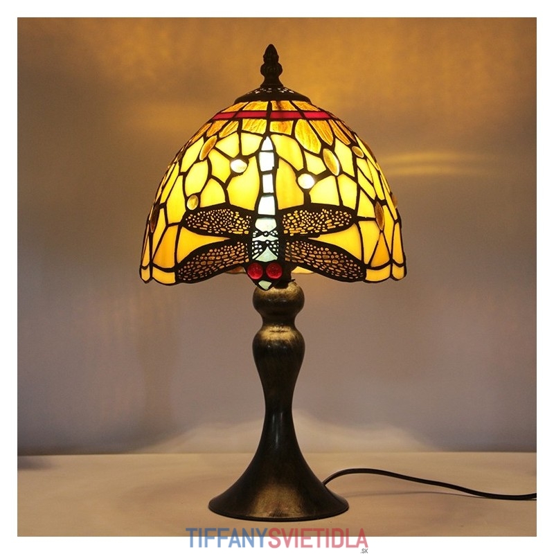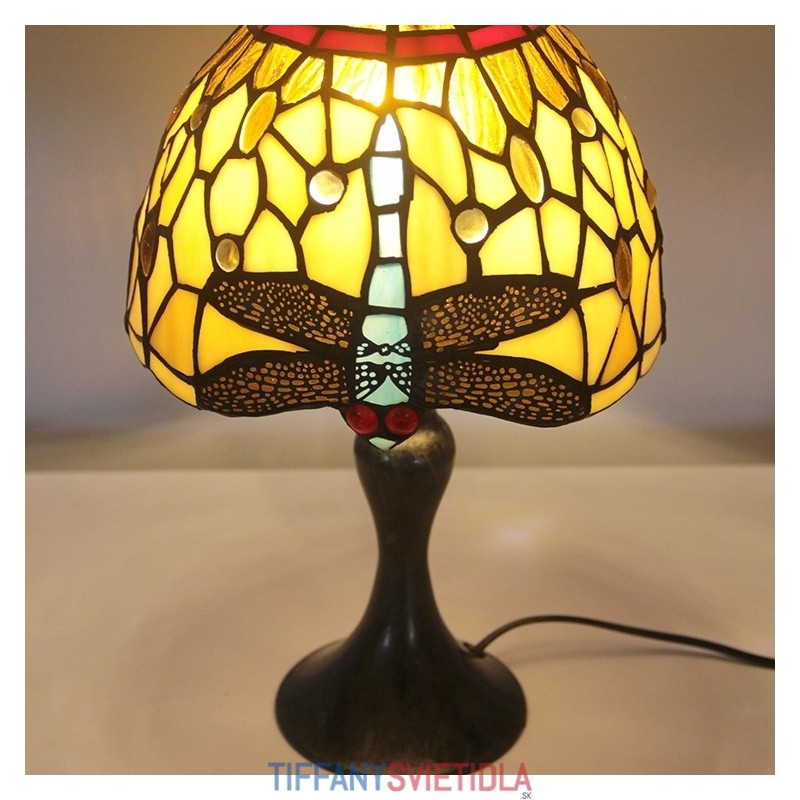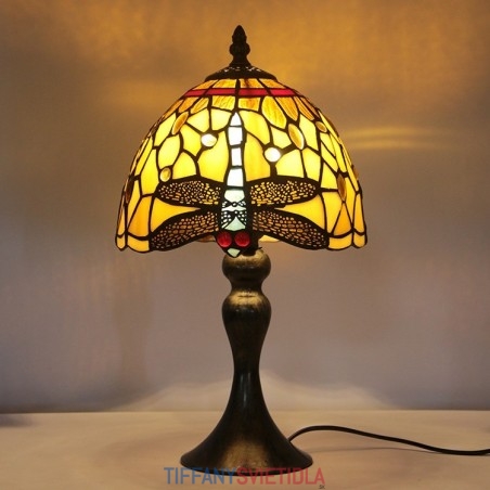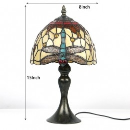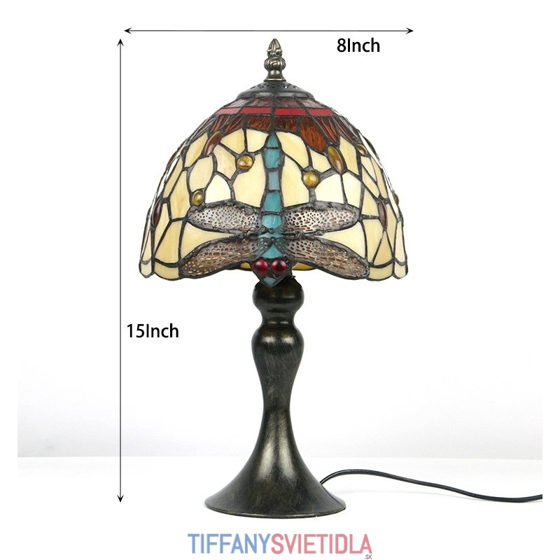 Stôl z farebného skla Tiffany Svetlomodrý Stôl s lampou Dragonfly Lamphade Nočné svetlo W8H15 Inch