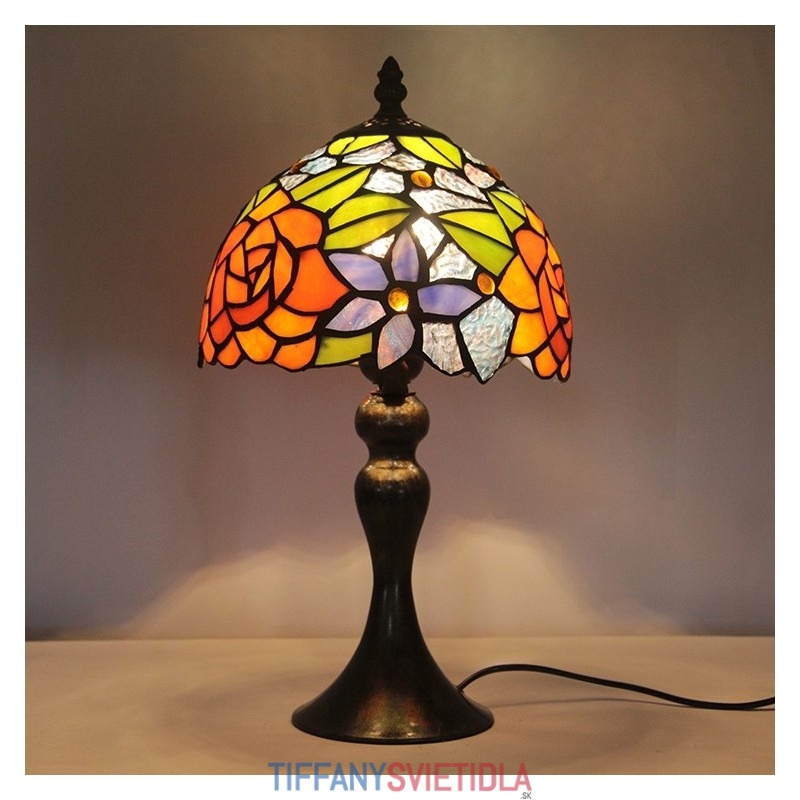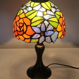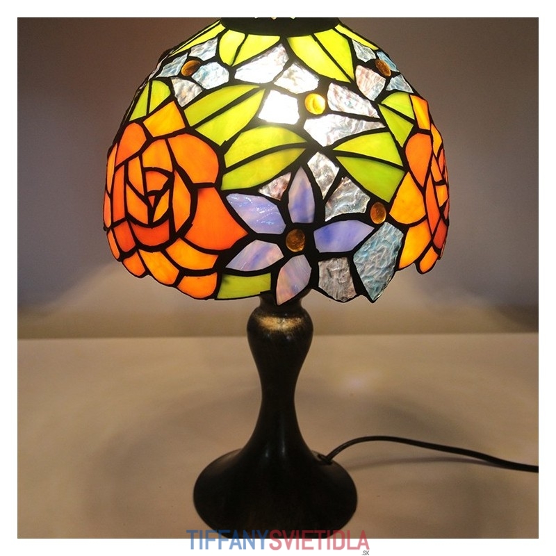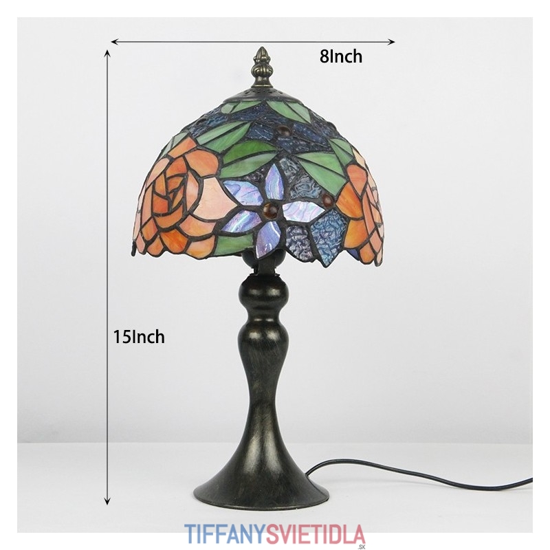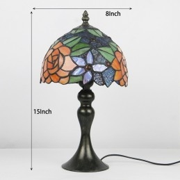 Stôl z farebného skla Tiffany Svetlý Oranžový Ružový Stôl s lampou Nočné svetlo na čítanie W8H15 Inch