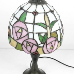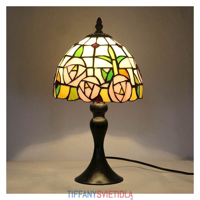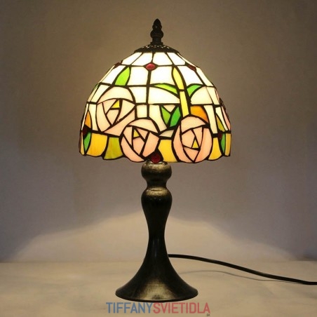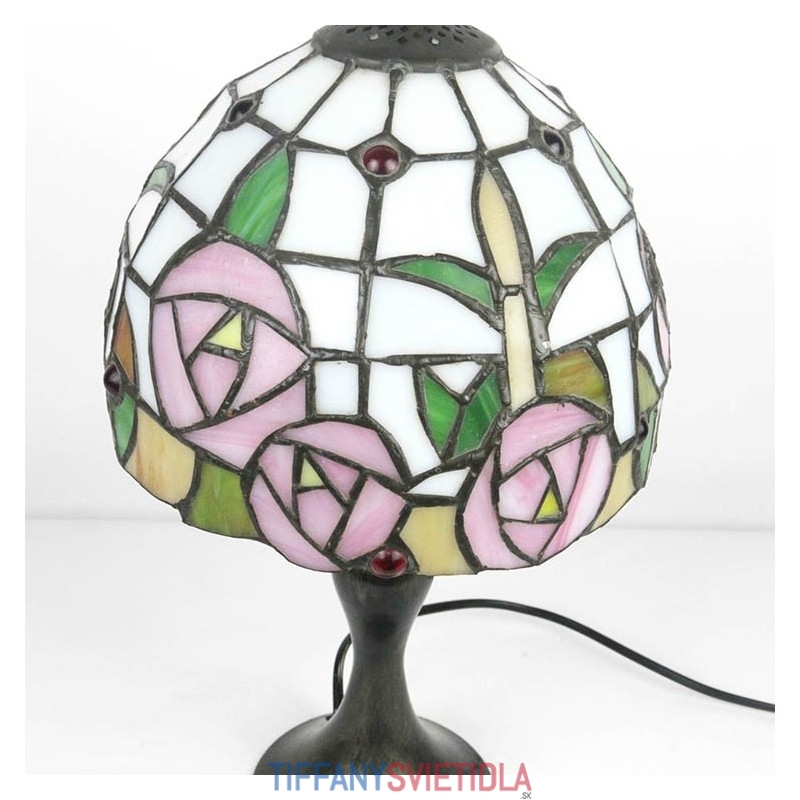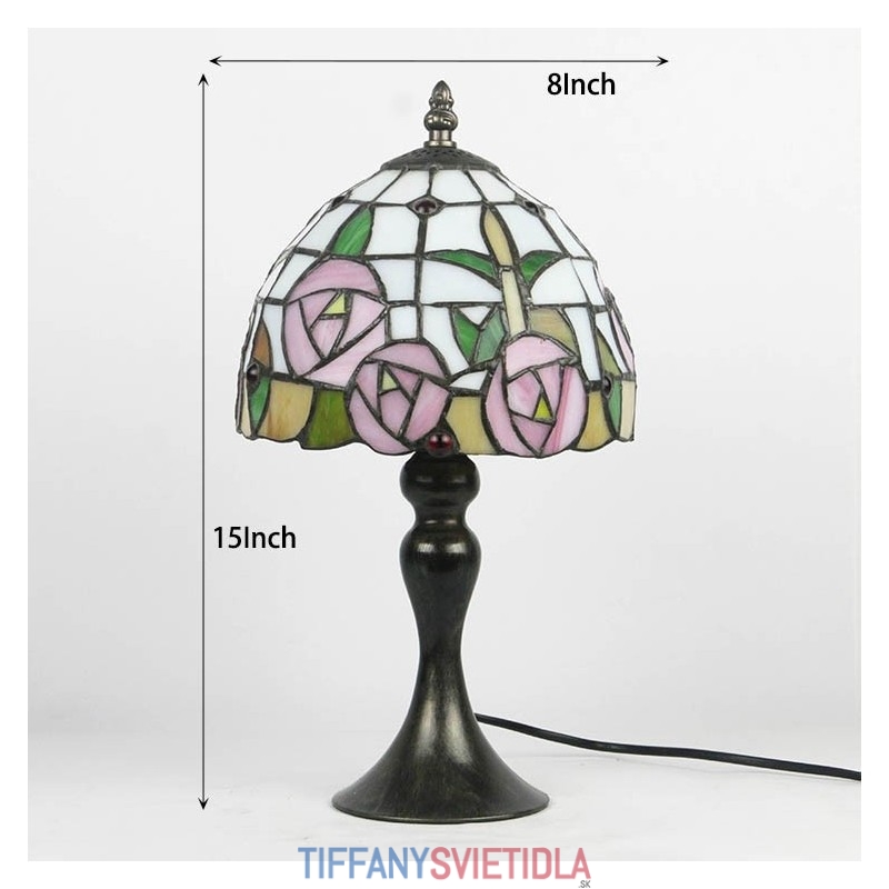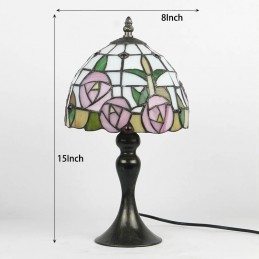Stôl z farebného skla Tiffany Svetloružová Kvetinová Ruža Lamfade Stolík na čítanie Nočné svetlo W8H15 Inch