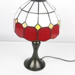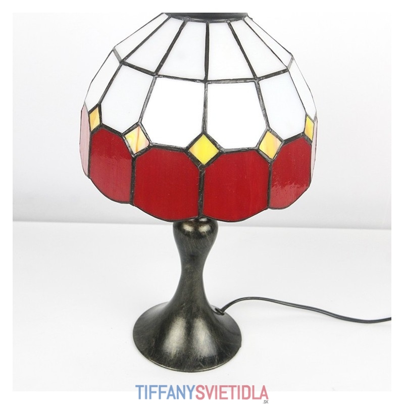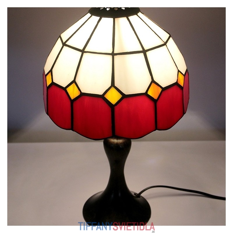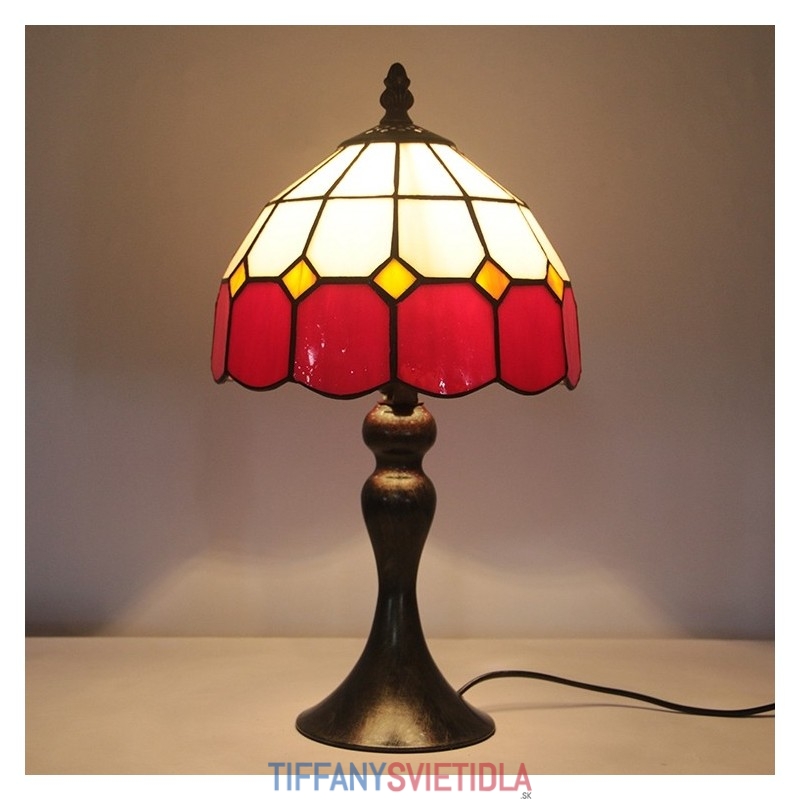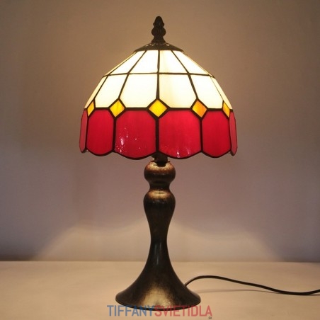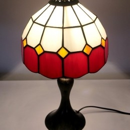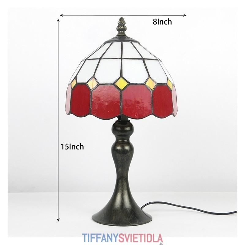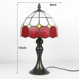 Stôl z farebného skla Tiffany Svetločervená Mriežka Lamfadový stolík Nočné svetlo na čítanie W8H15 Inch
