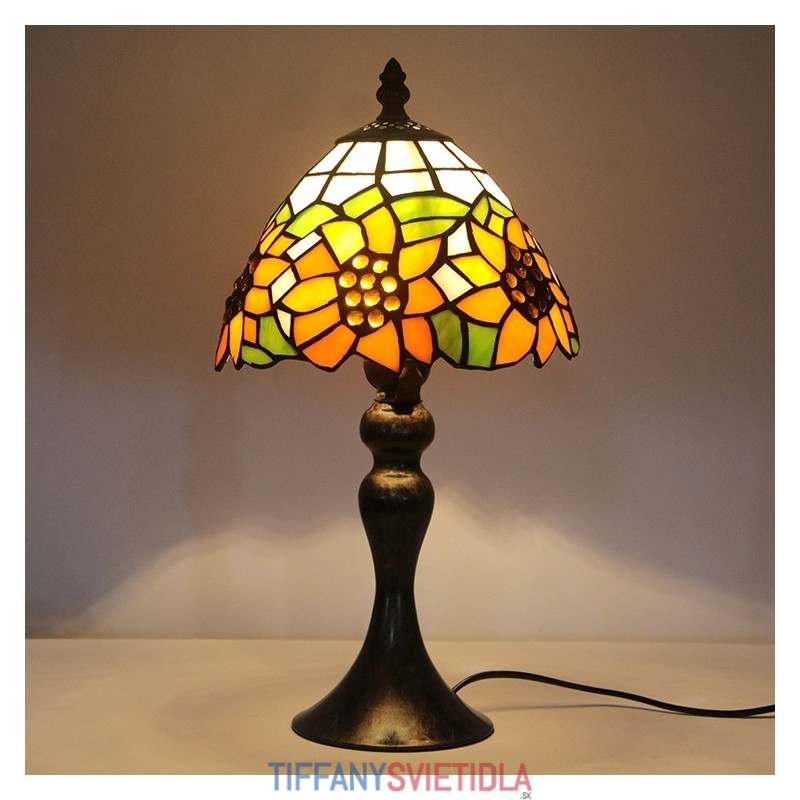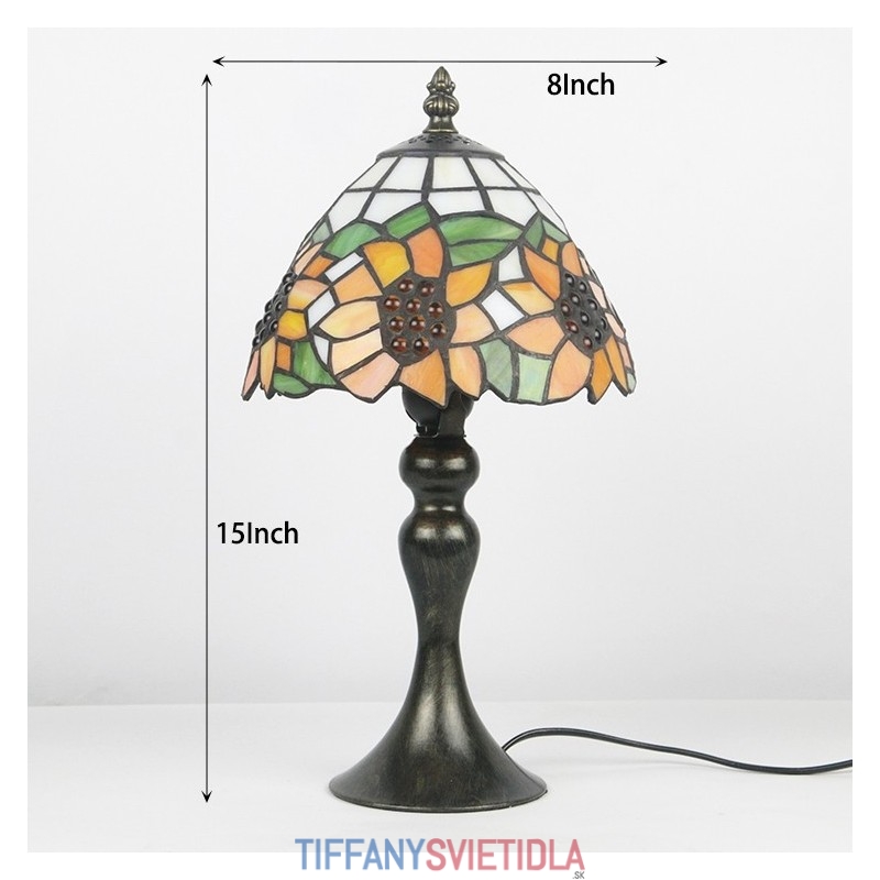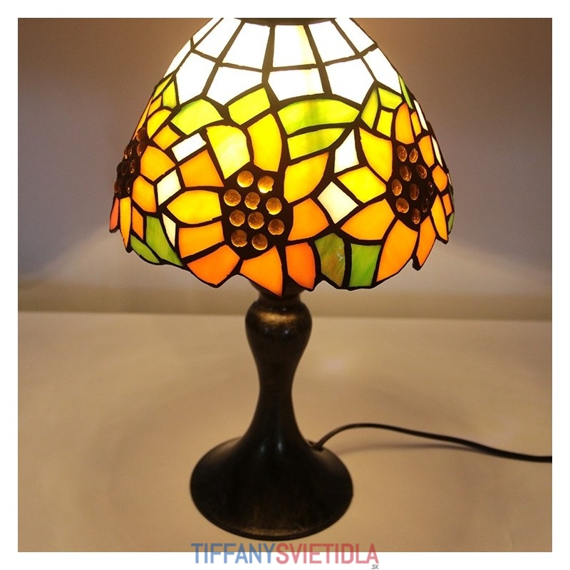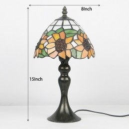 Stôl z farebného skla Tiffany Svetložltý Slnečnicový Lamfade Stôl na čítanie Nočné svetlo W8H15 Inch