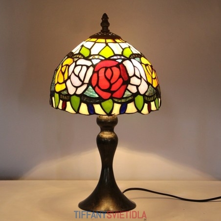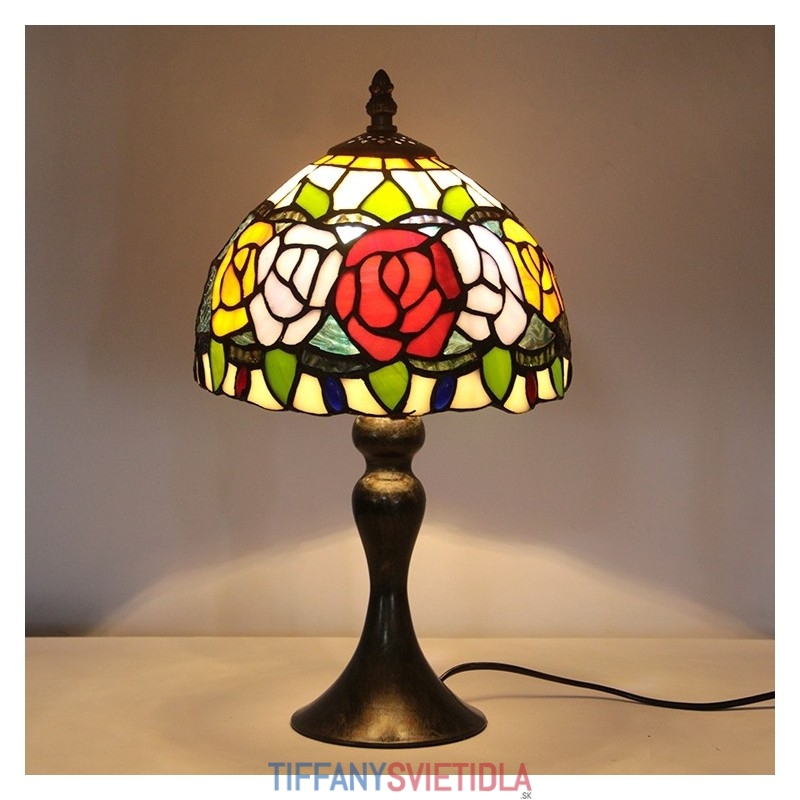 Stôl z farebného skla Tiffany Svetlá Červená Ruža Lamfade Stolík na čítanie Nočné svetlo W8H15 Inch
