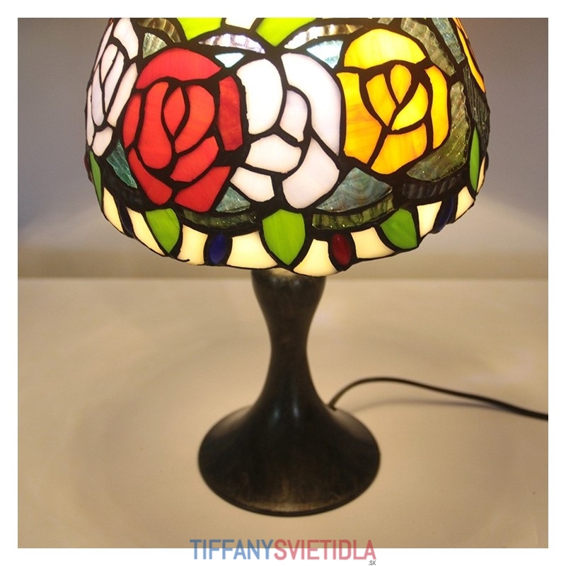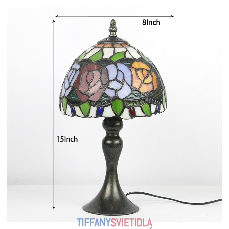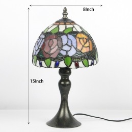 Stôl z farebného skla Tiffany Svetlá Červená Ruža Lamfade Stolík na čítanie Nočné svetlo W8H15 Inch