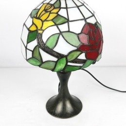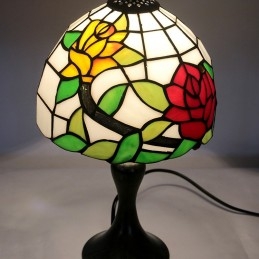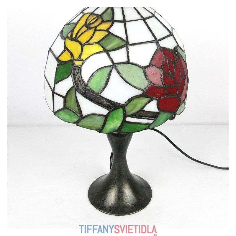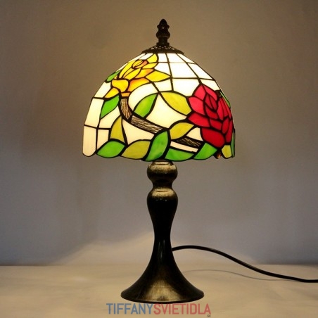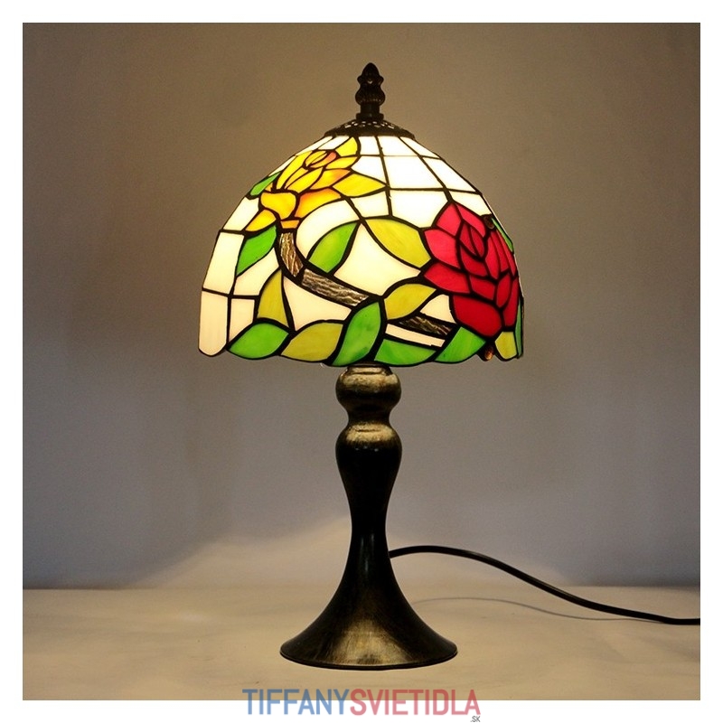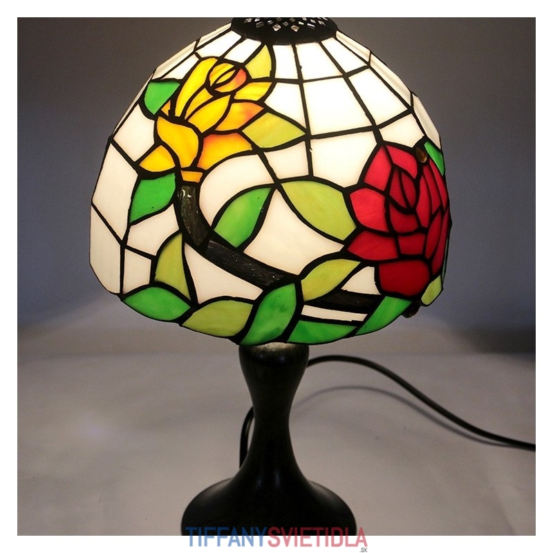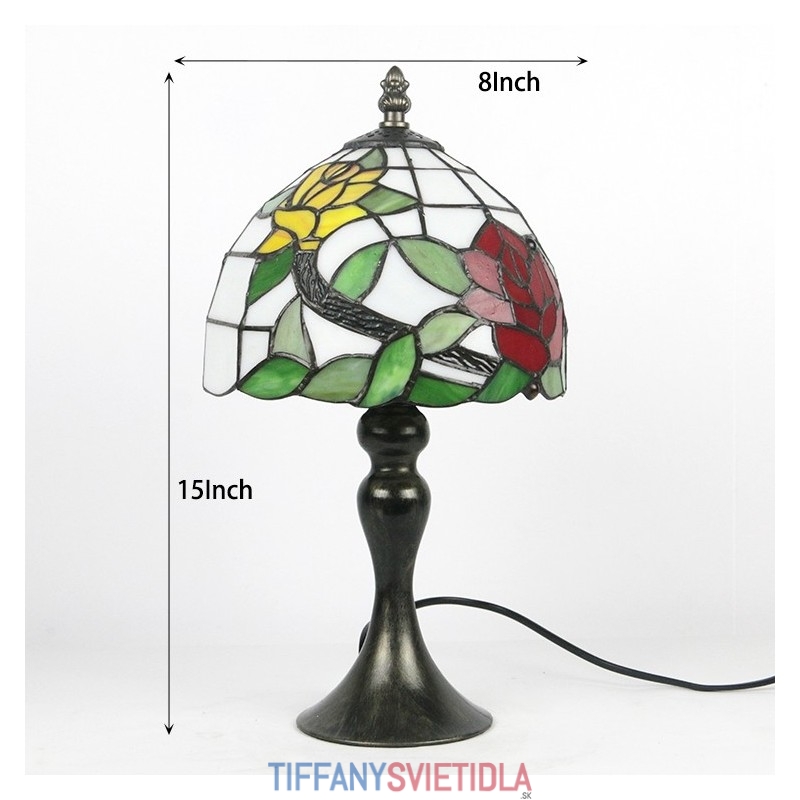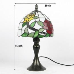 Červený kvet Tiffany vitráže Stôl v štýle Svetlo Ruža Lmapshade Tabuľka na čítanie Nočné svetlo W8H15 Inch