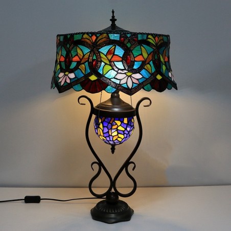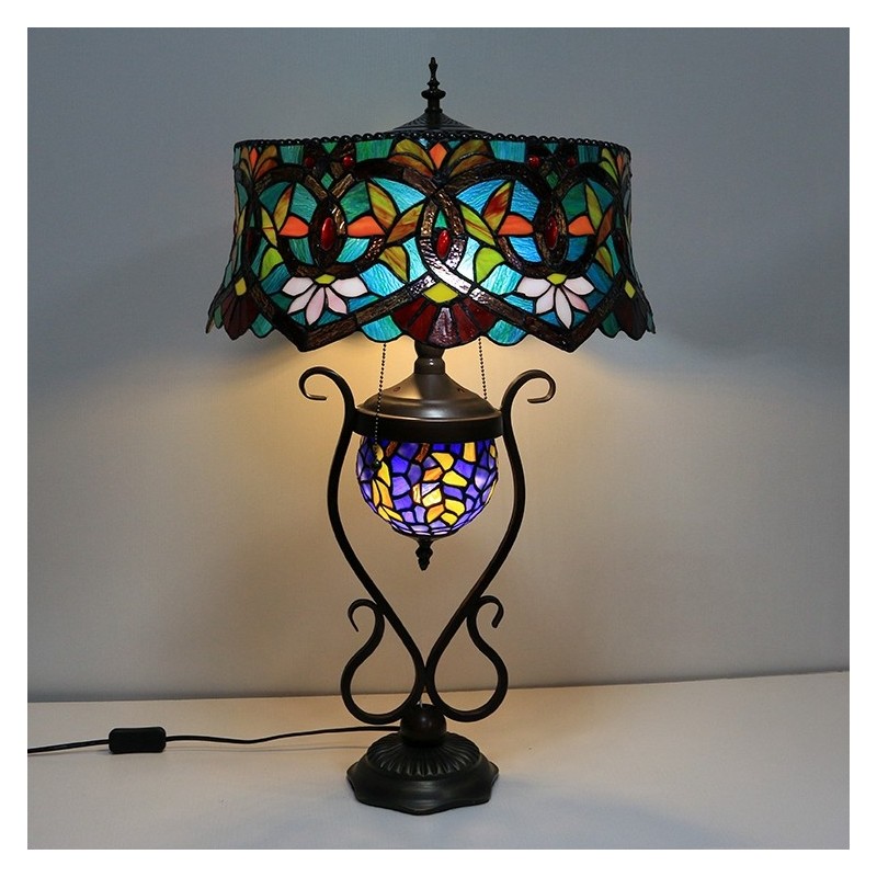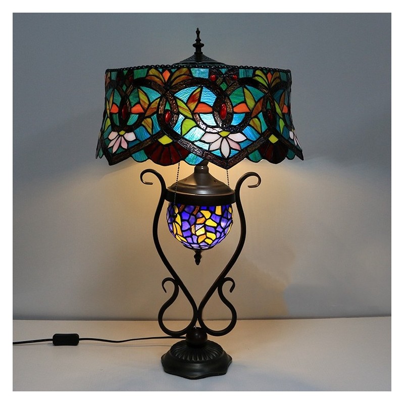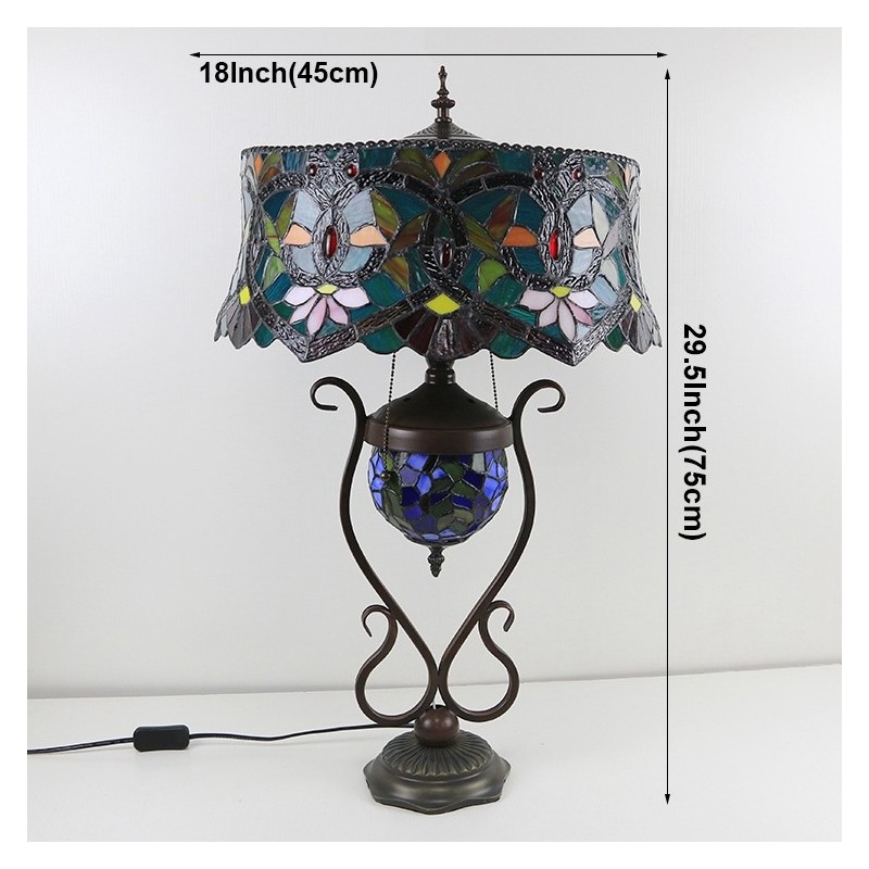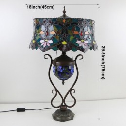 Lampa v štýle Tiffany 18-palcová starožitná vitrážová lampa s červeným kvetom Tienidlo lampy so sklenenou svetelnou základňou