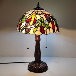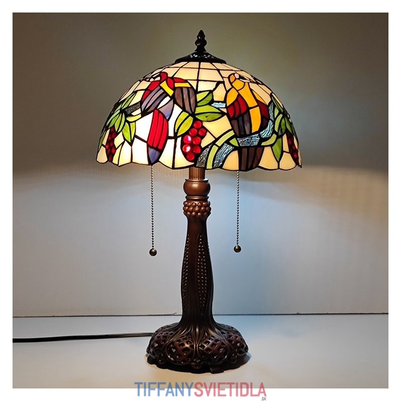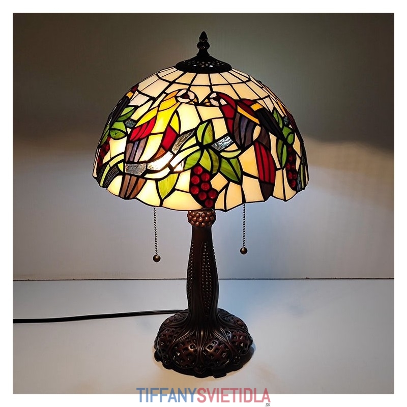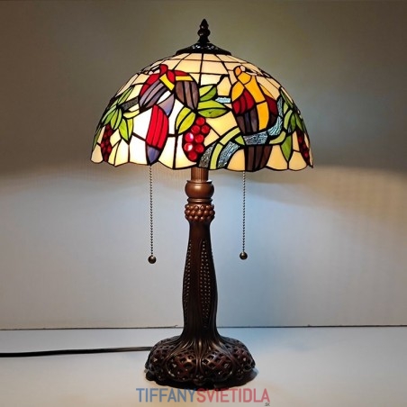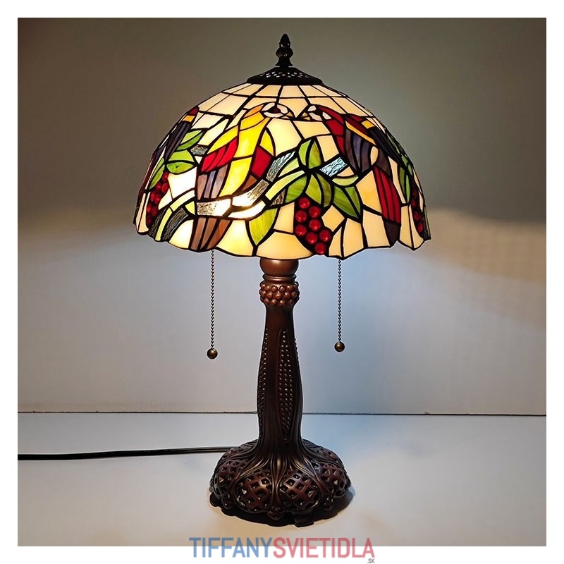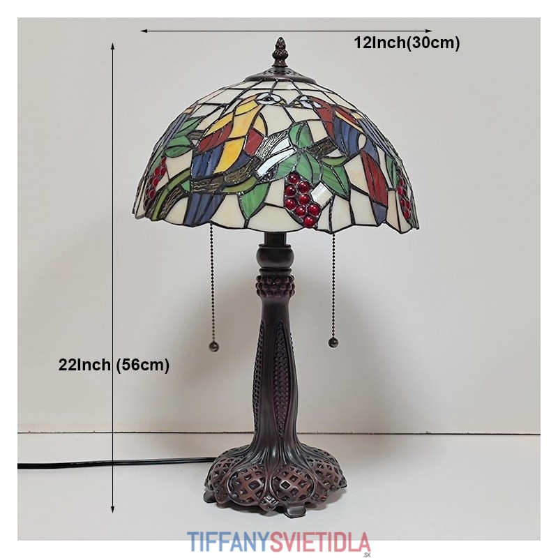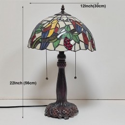 Stôl z farebného skla Tiffany Svetlo Vzor Vtáčik Tienidlo Tabuľka Nočné svetlo na čítanie W12H22 Inch