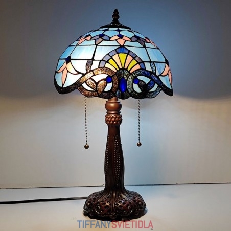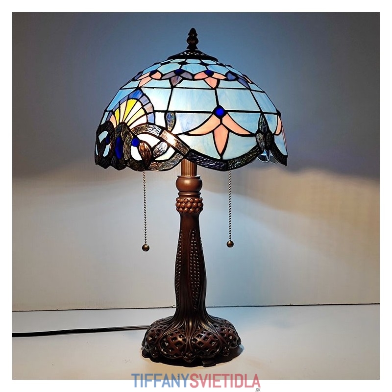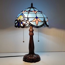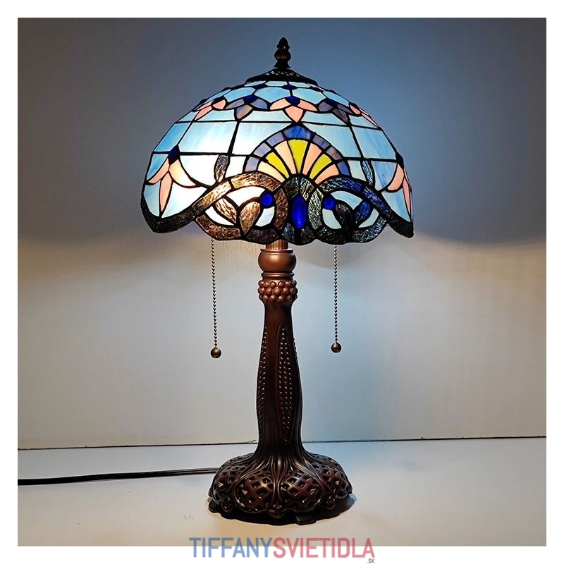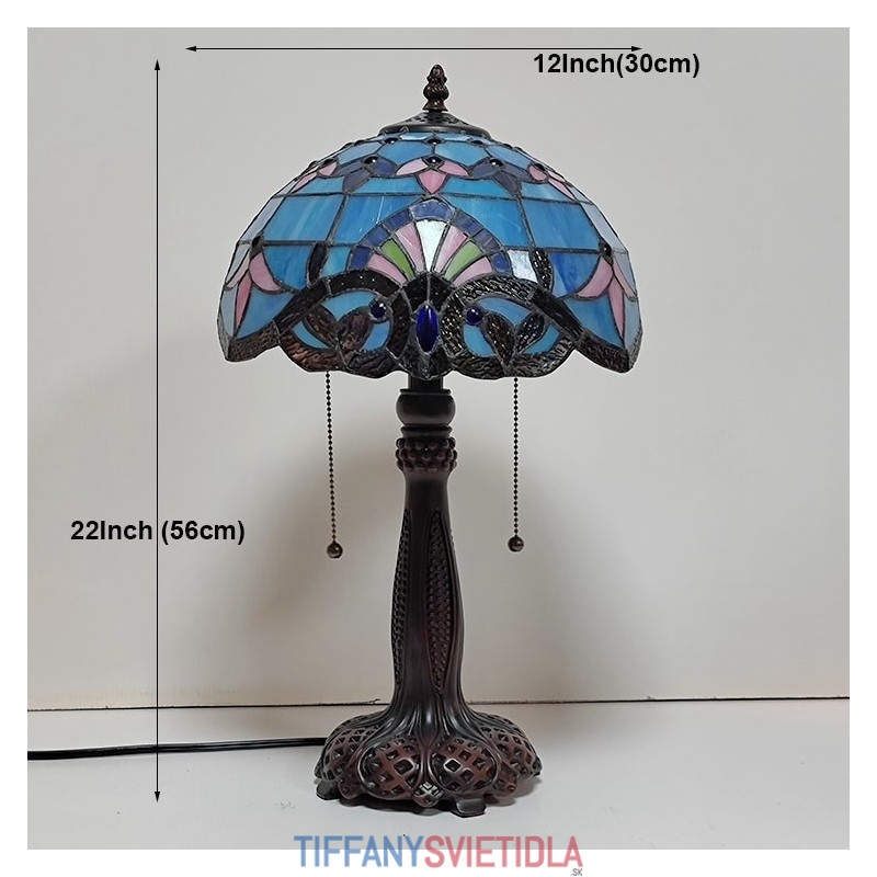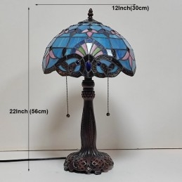 Tiffany Stôl v štýle farebného skla Svetlý Barokový Modrý Stôl Nočné svetlo na čítanie W12H22 Inch