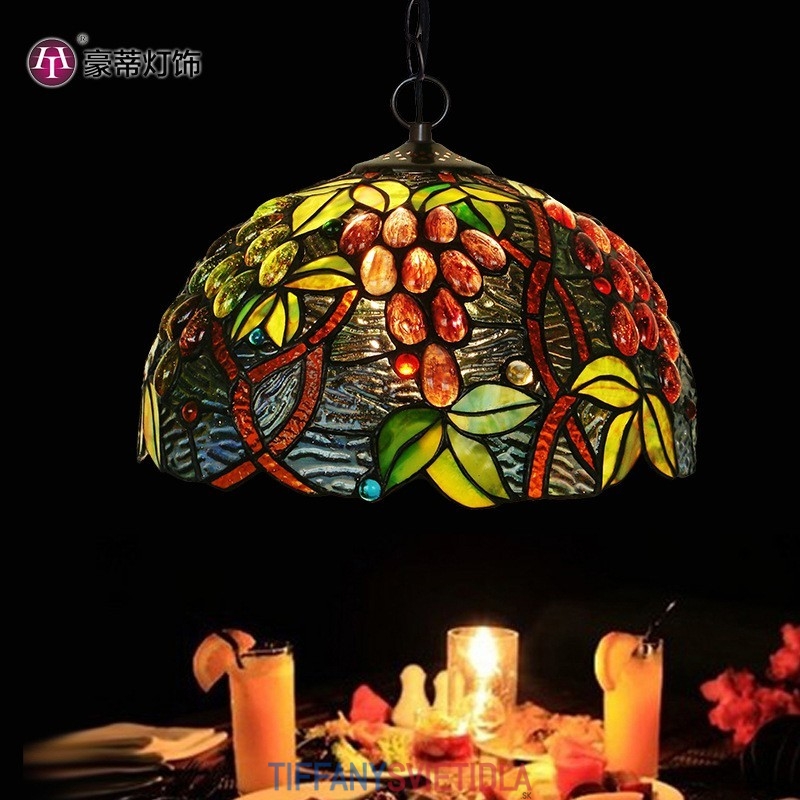 30 cm Retro závesné svietidlo z farebného skla Tiffany