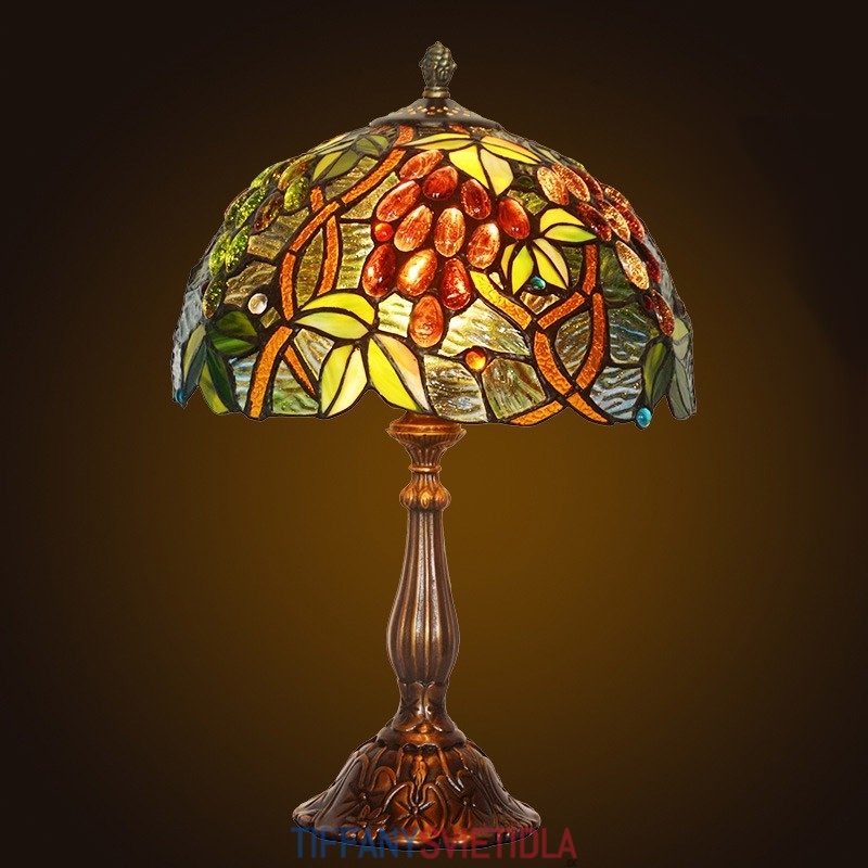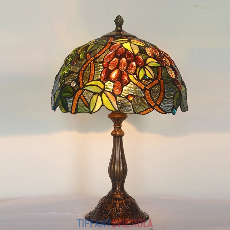 30 cm Rural Retro Grape Stolová lampa Tiffany z farebného skla