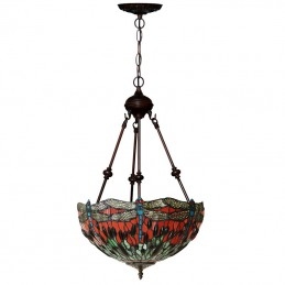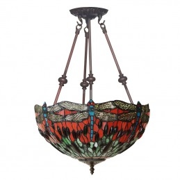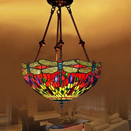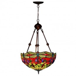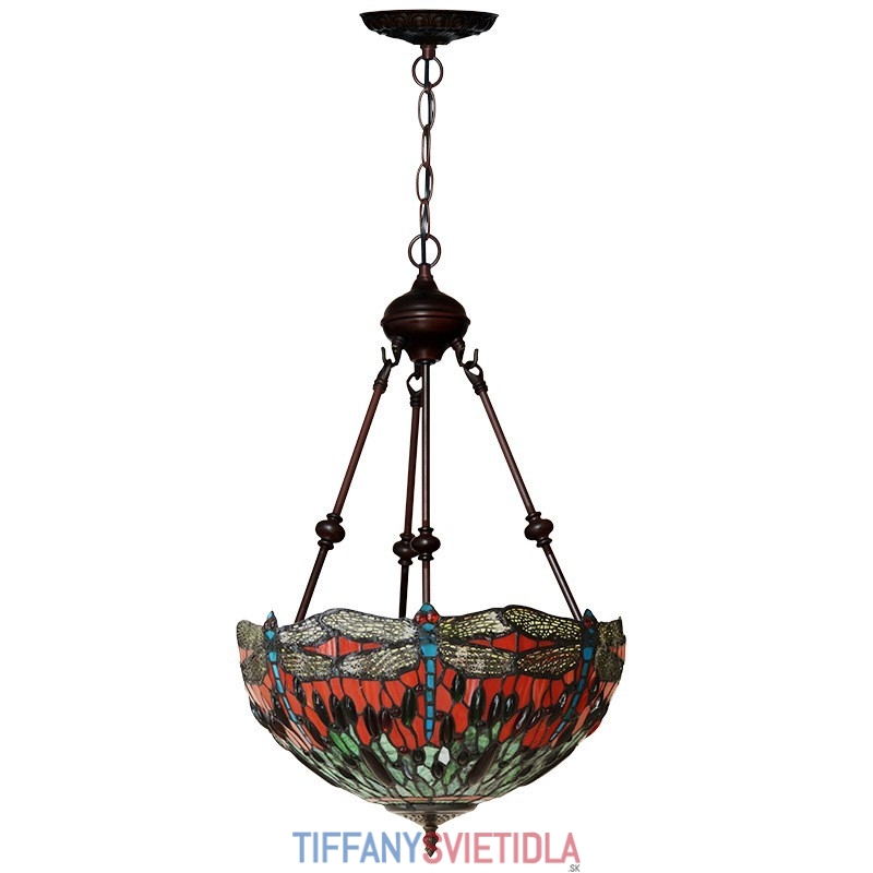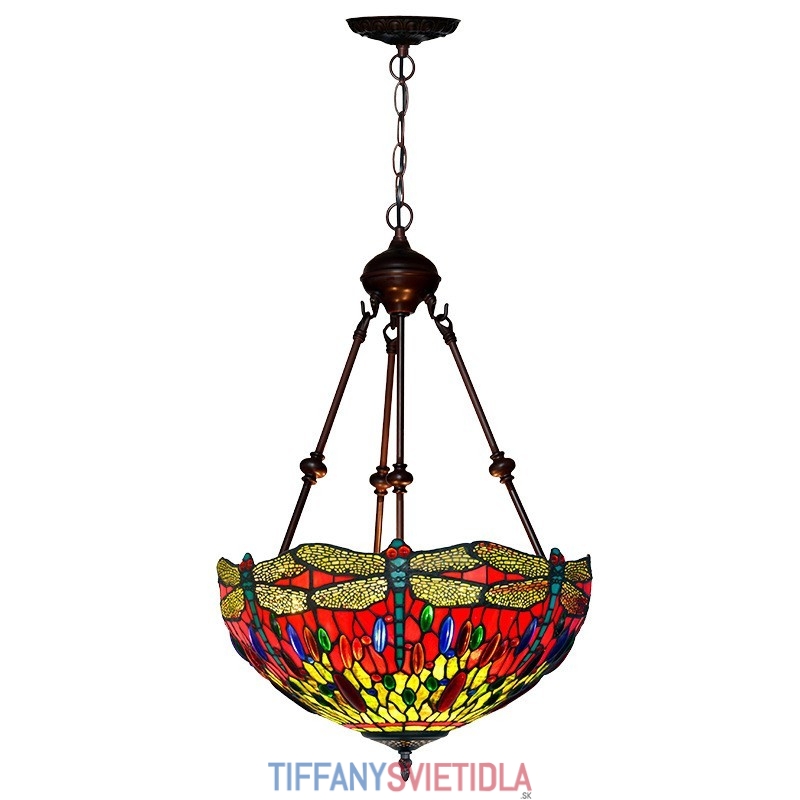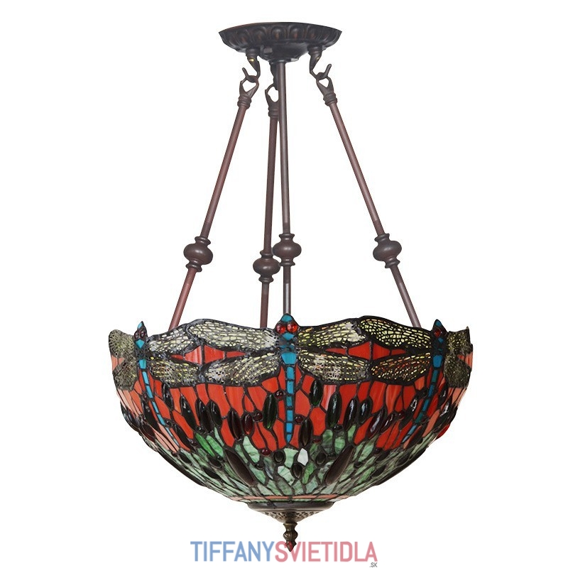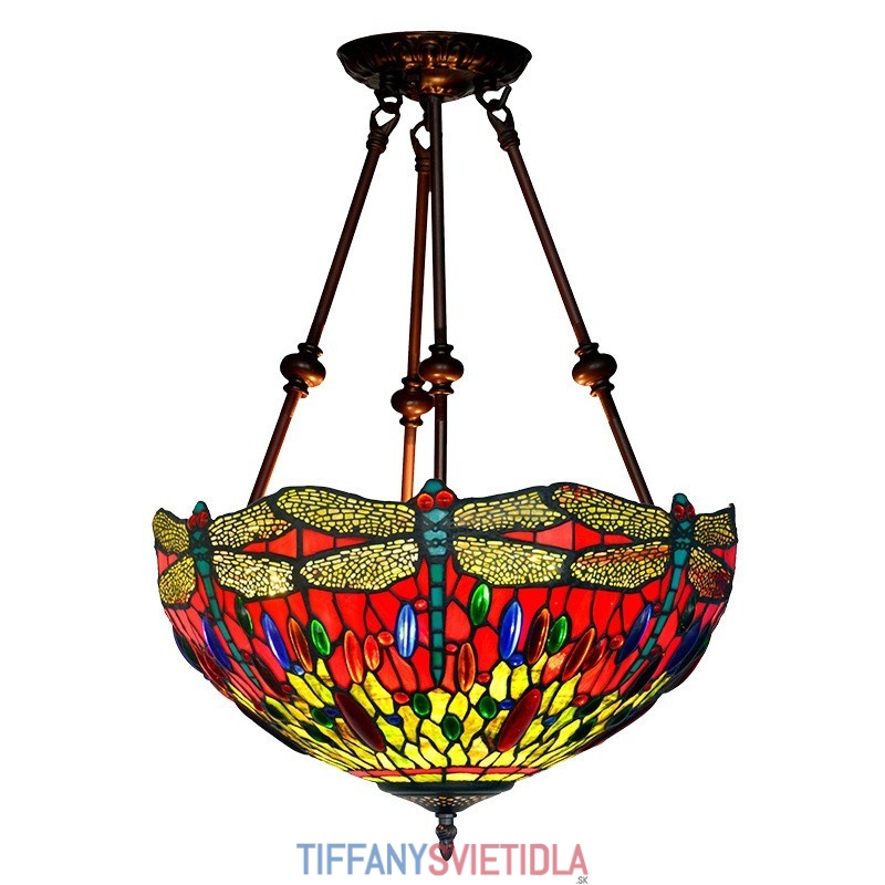 40 cm Retro závesné svietidlo Vážka Tiffany z farebného skla