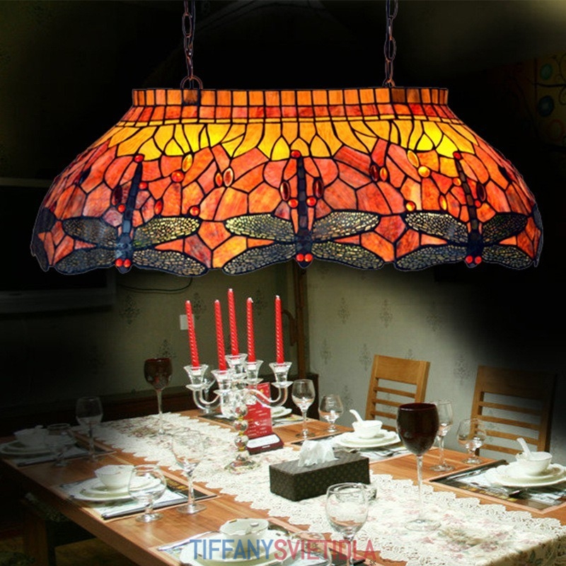 84 cm závesné svietidlo Vážka Tiffany z farebného skla