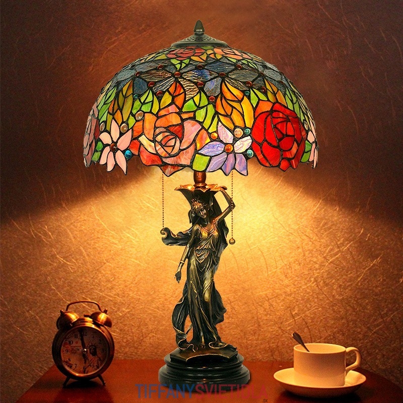 Stolová vitrážová lampa Rose Tiffany 40 cm