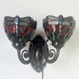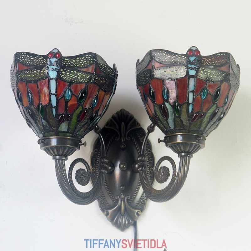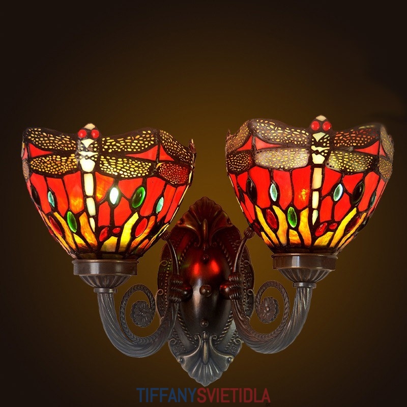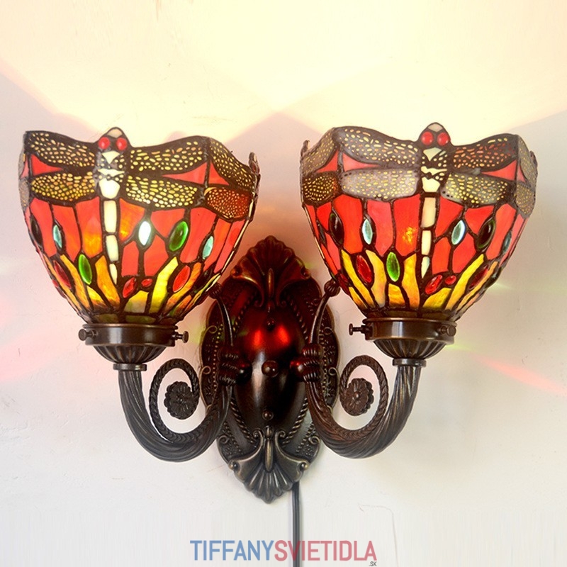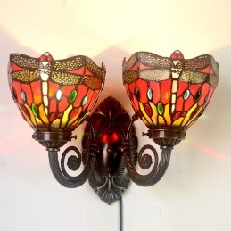 Retro 2 Light Red Dragonfly Tiffany Stained Glass Nástenné svietidlo