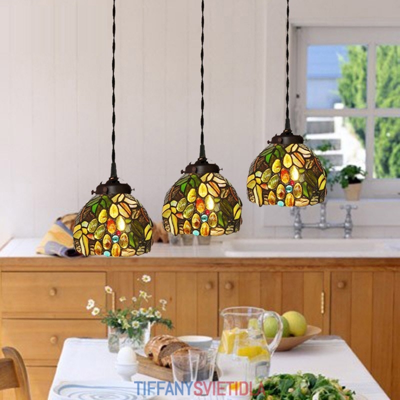 Grape 3 Light Tiffany Stained Glass Pendant Light
