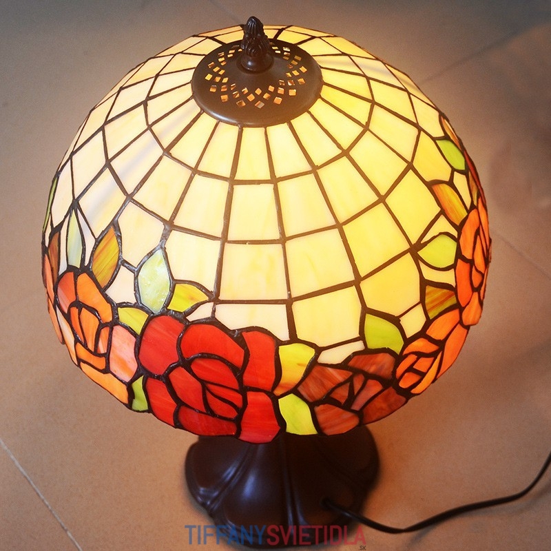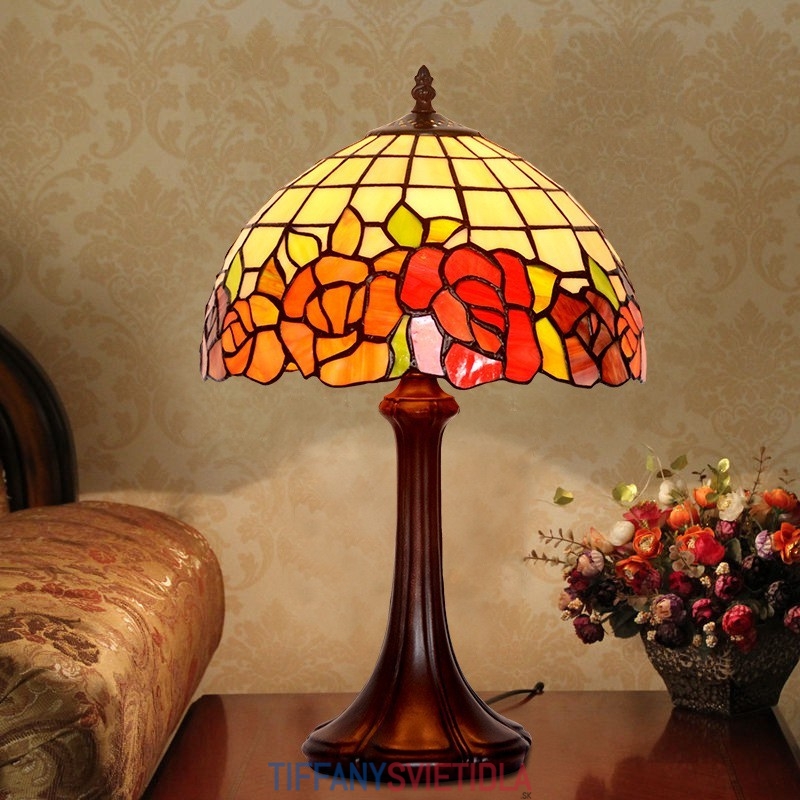 30 cm Vidiecka stolová lampa z červeného skla Tiffany