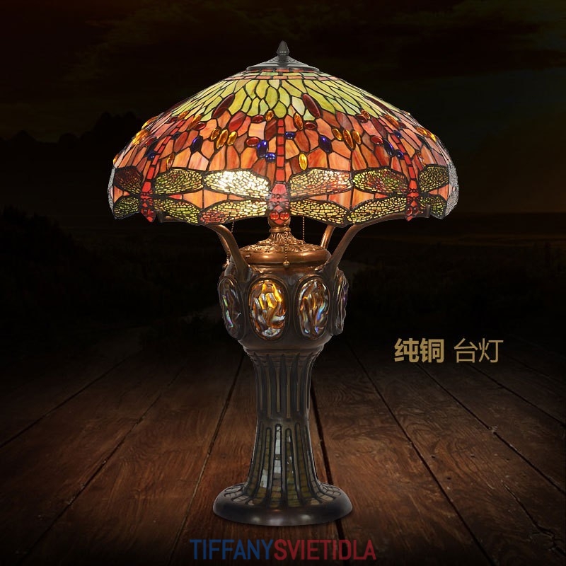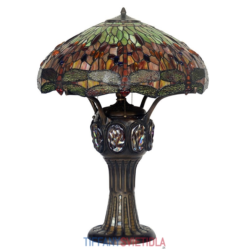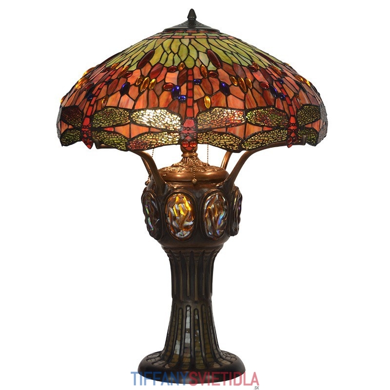 Stolová vitrážová lampa Tiffany 55 cm Červená vážka