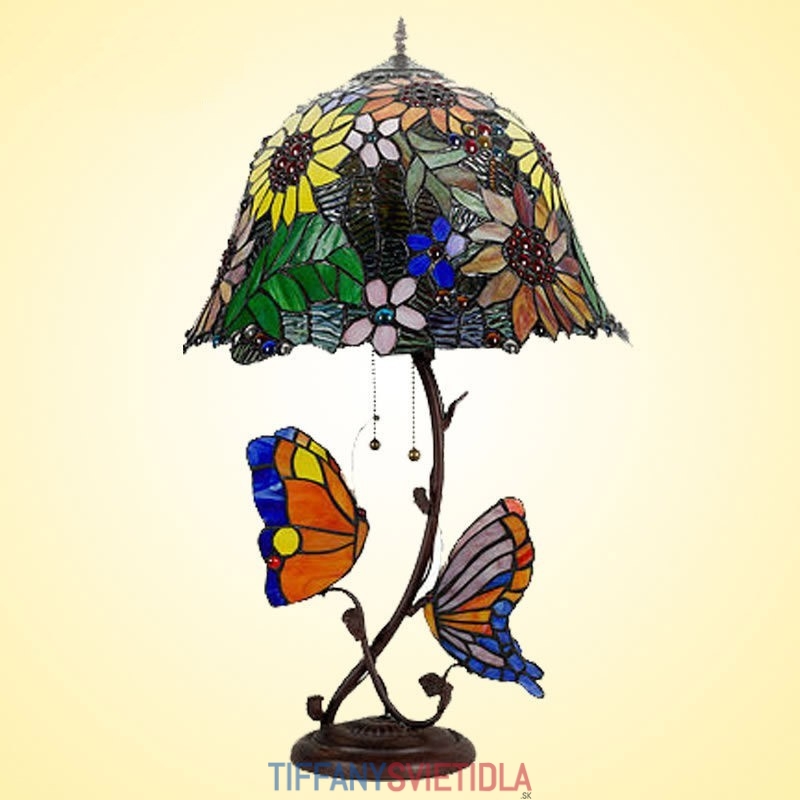 40 cm Rural Butterfly Slnečnica Tiffany Stolná vitrážová lampa