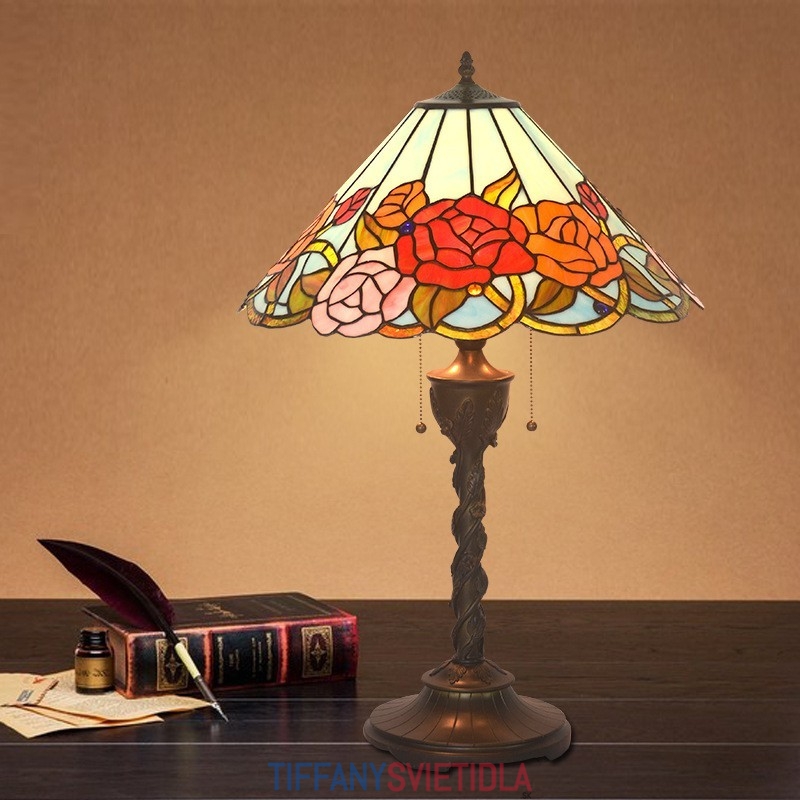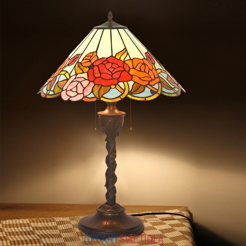 Stolová lampa z farebného skla Rose Tiffany 45 cm