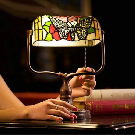 Stolová vitrážová lampa motýľ Tiffany 25 cm