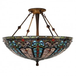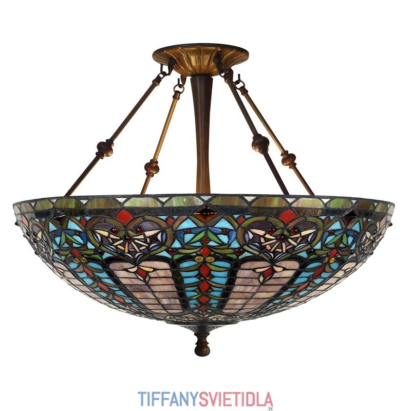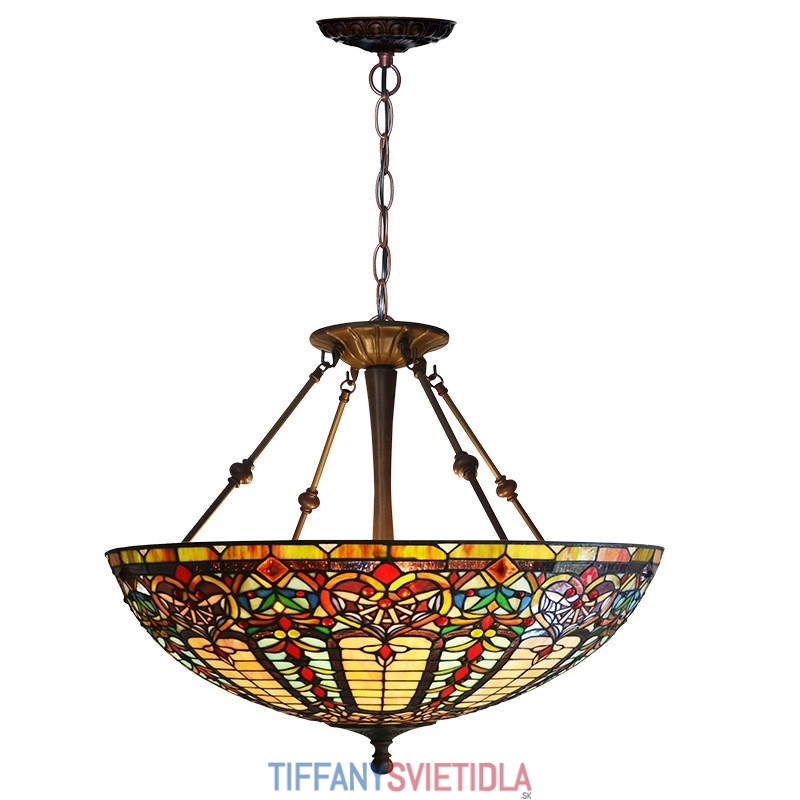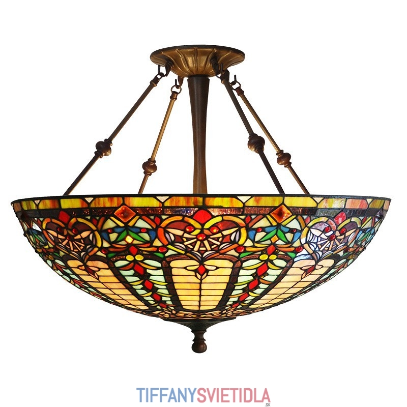 55 cm Barokové závesné svietidlo z farebného skla Tiffany