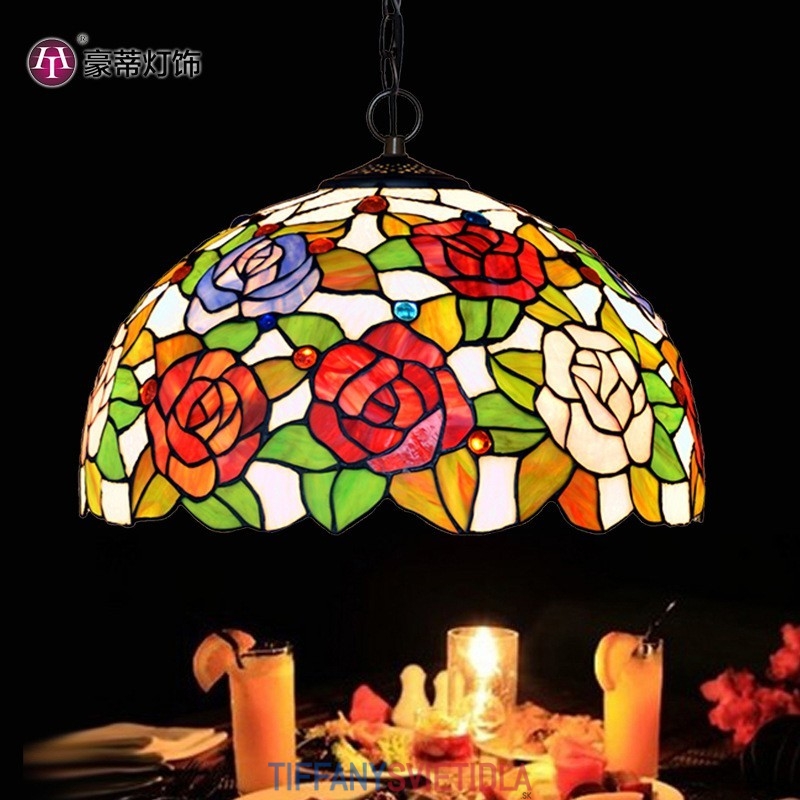 40 cm Retro Rose Tiffany vitrážové svietidlo