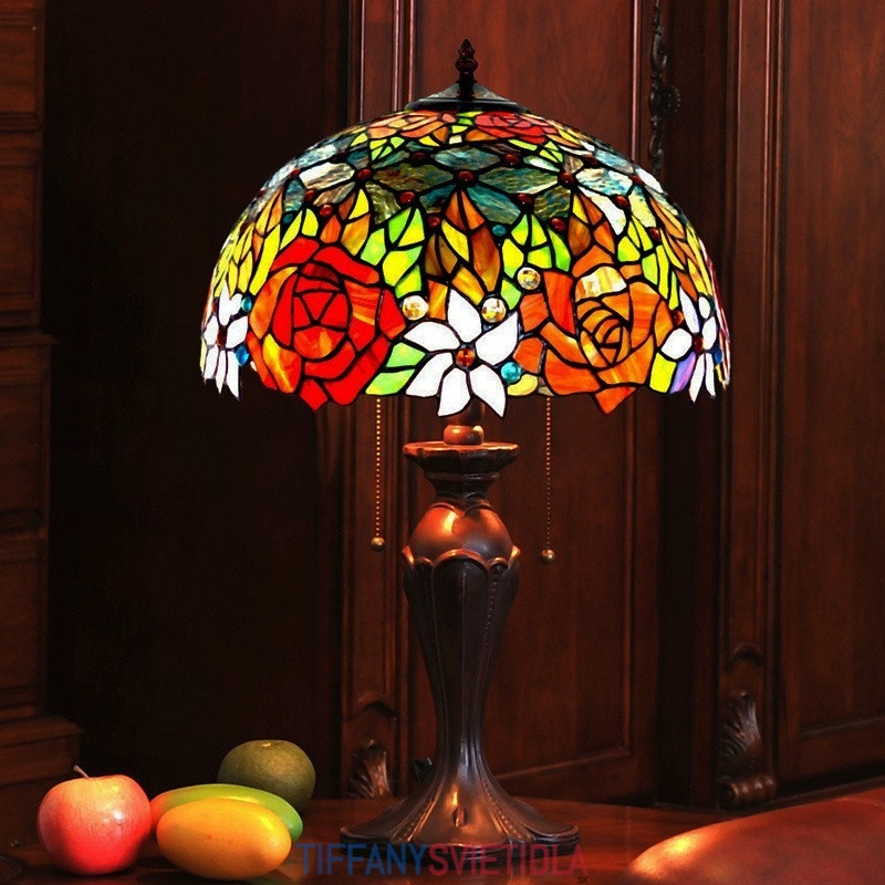 40 cm Retro Rose Tiffany vitrážová stolová lampa
