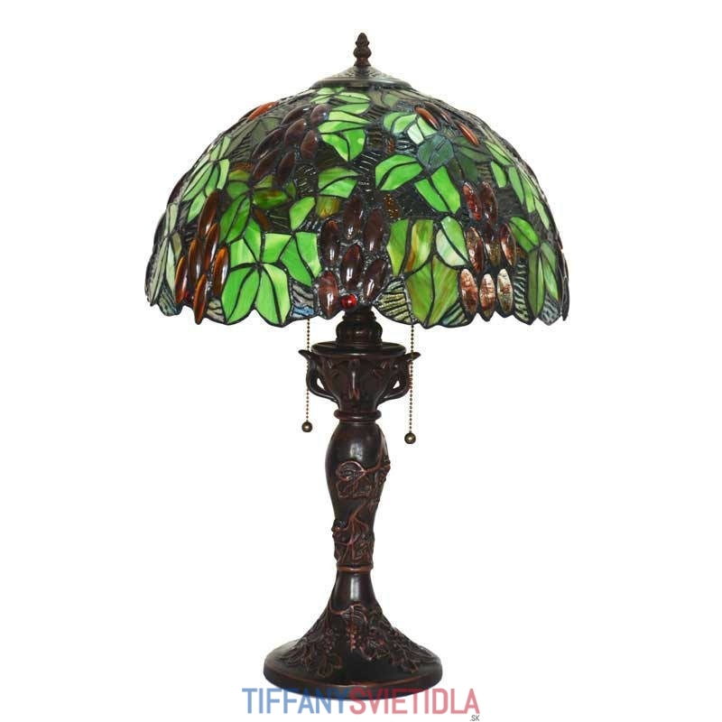 43 cm Rustikálna vitrážová stolová lampa z hrozna Tiffany