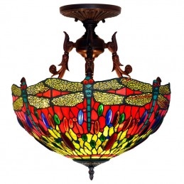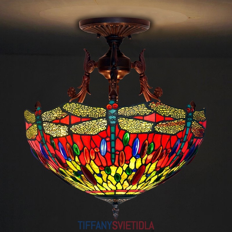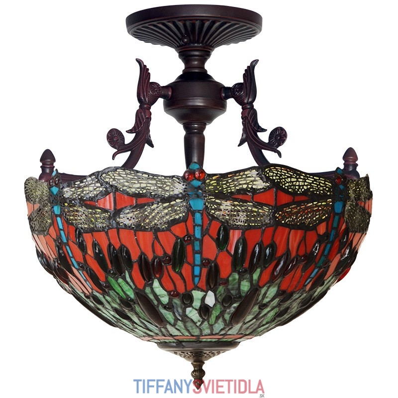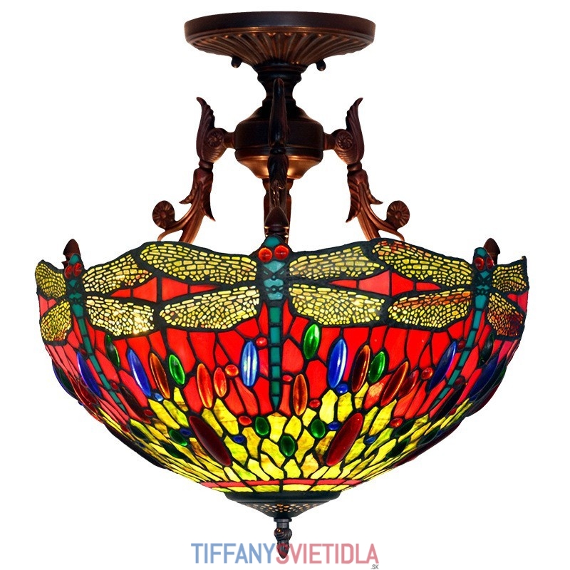 40 cm Retro závesné svietidlo Vážka Tiffany z farebného skla