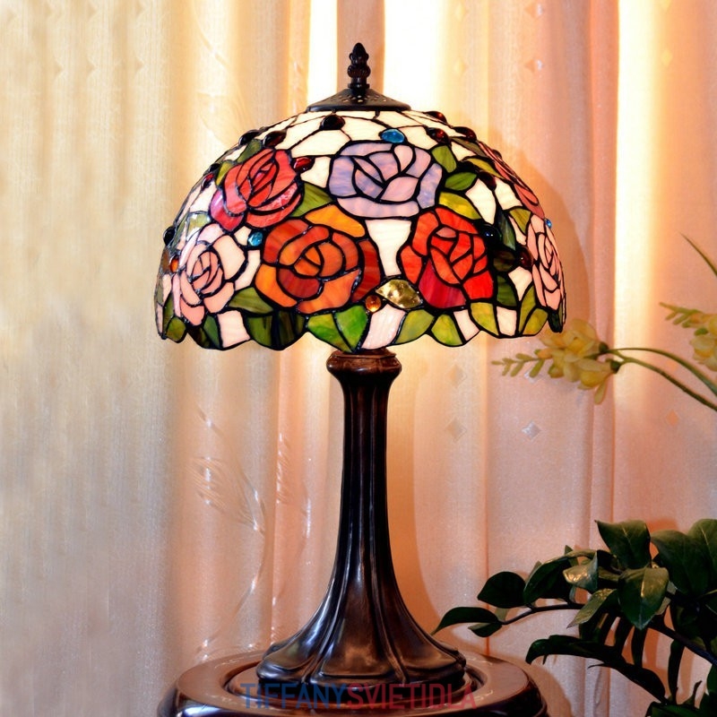 Stolová vitrážová lampa Rose Tiffany 30 cm