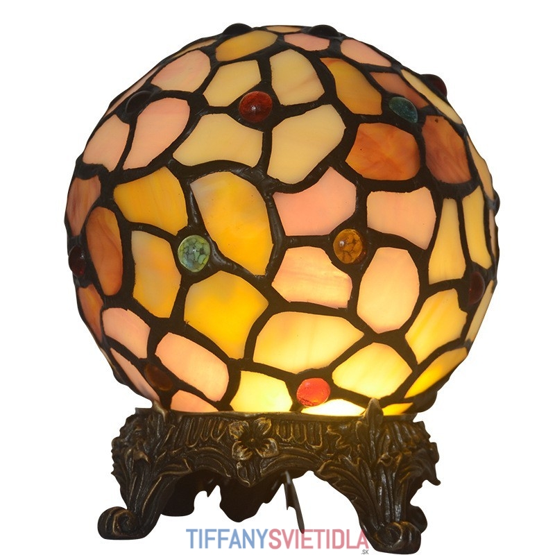 Žltá stolová lampa z farebného skla Tiffany