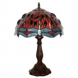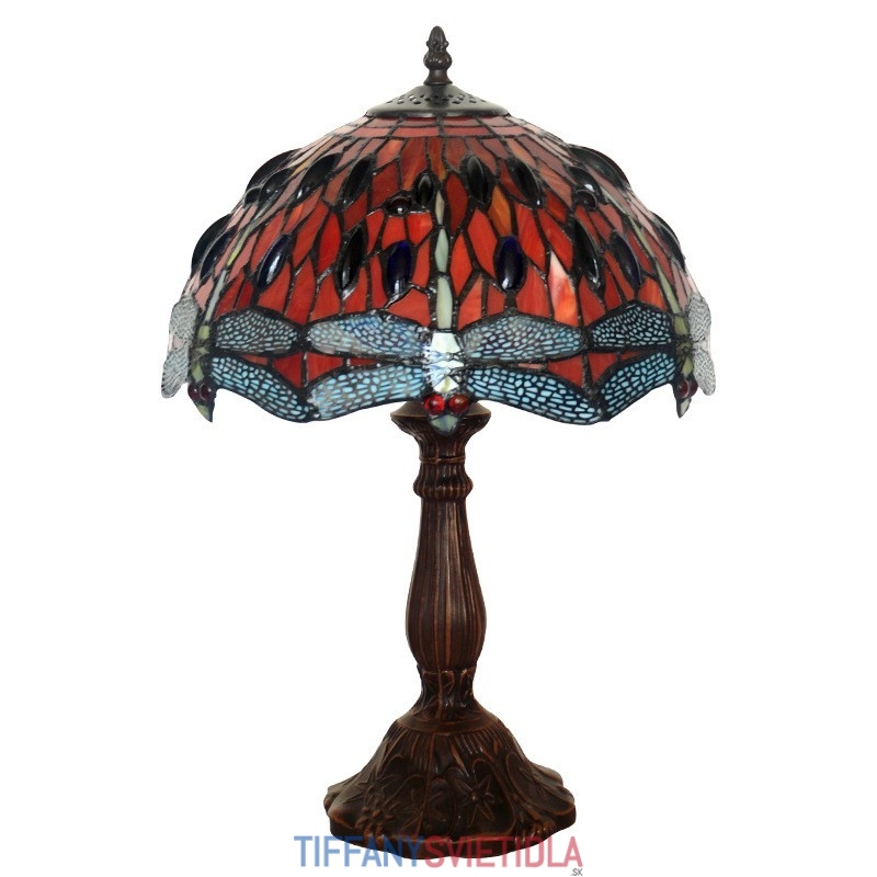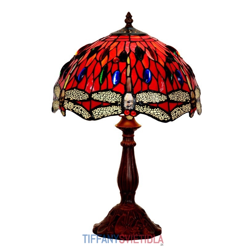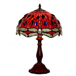 30 cm Retro červená vážka Tiffany stolová lampa z farebného skla