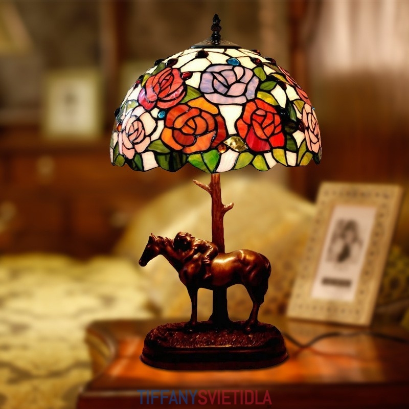 30 cm Rural Rose Tiffany Stolová vitrážová lampa