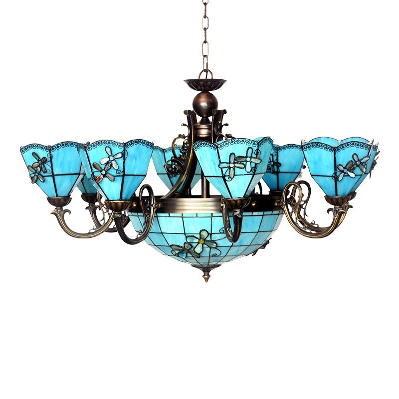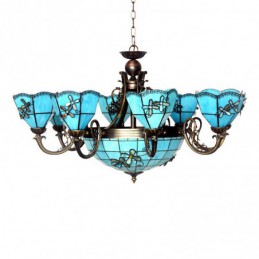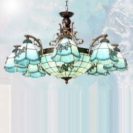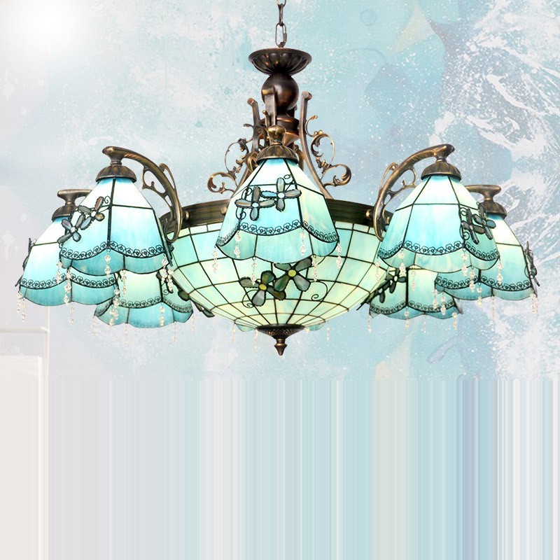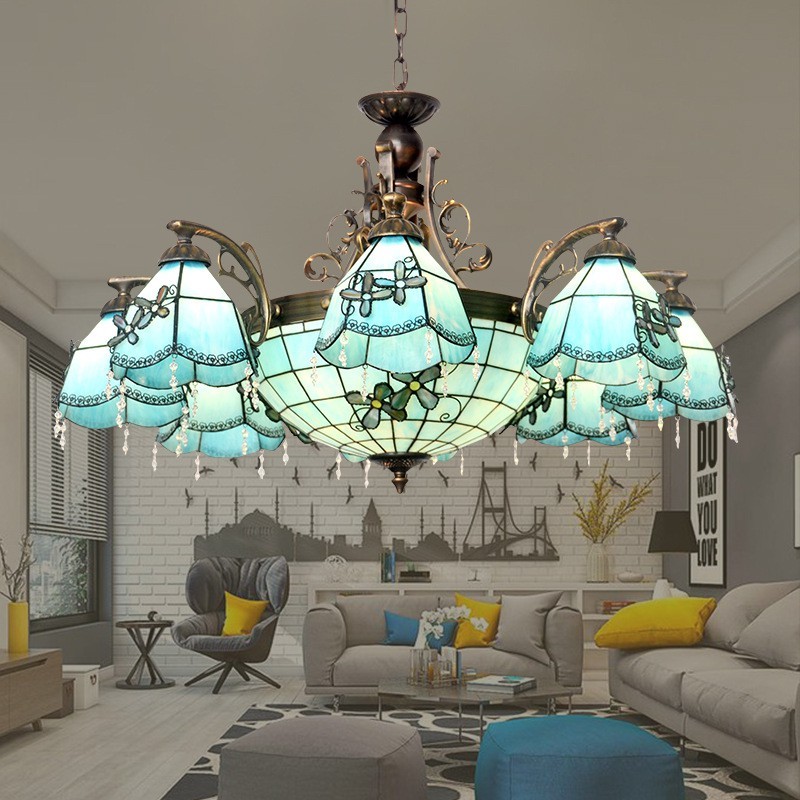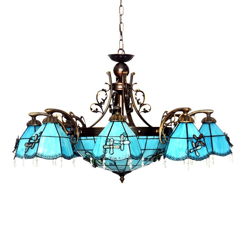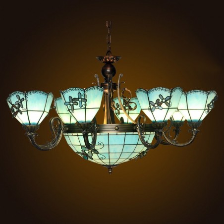 Závesné svietidlo z farebného skla v stredomorskom štýle 8+1 Tiffany