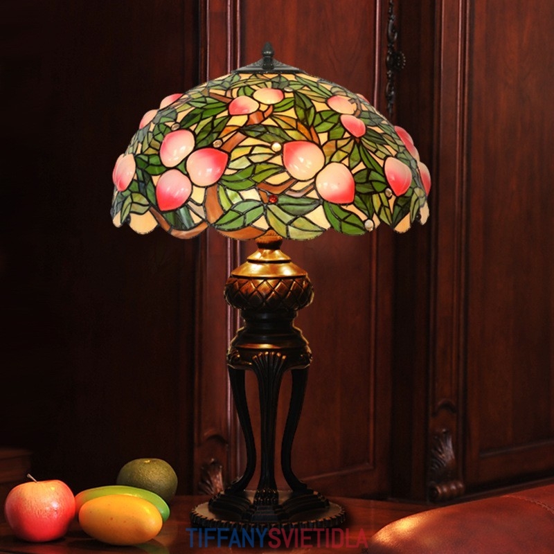 50 cm Rustikálna vidiecka stolová lampa z farebného skla Tiffany